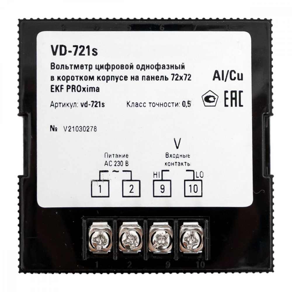 Вольтметр VD-721s цифровой на панель 72x72 (квадратный вырез) однофазный в коротком корпусе EKF PROxima VD-721s, Вольтметр встраиваемый