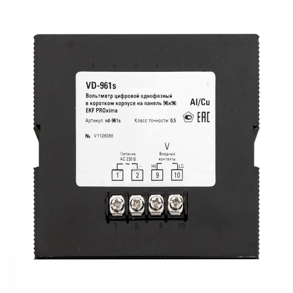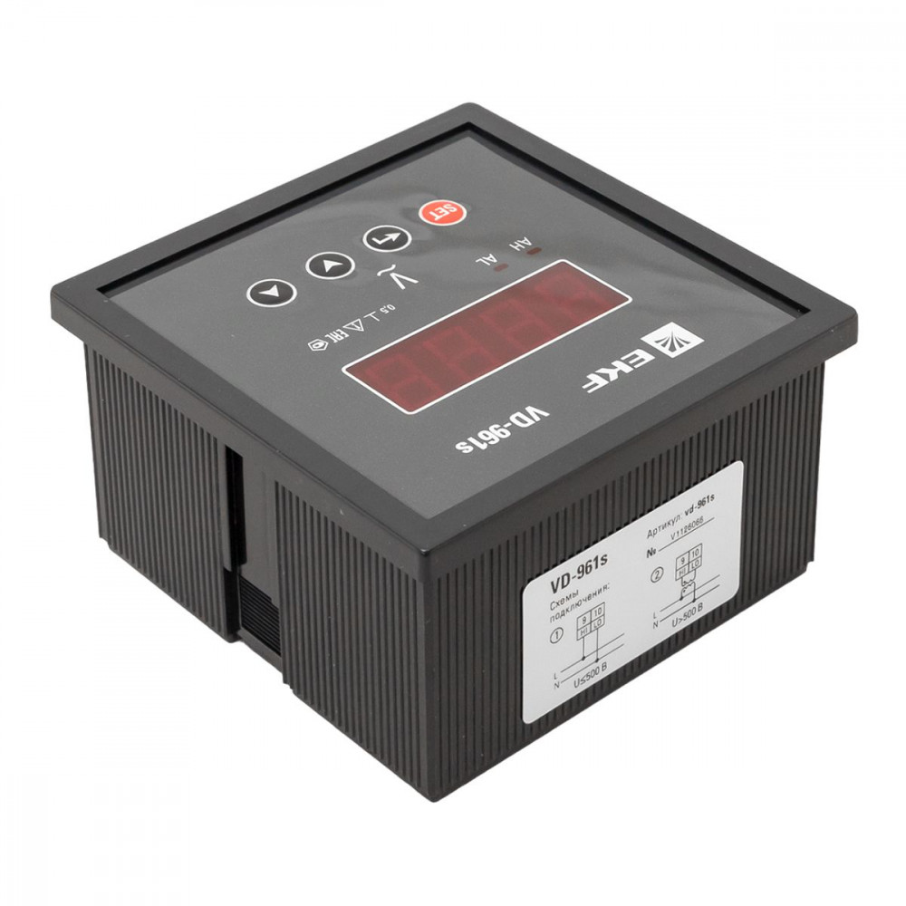 Вольтметр VD-961s цифровой на панель 96x96 (квадратный вырез) однофазный в коротком корпусе EKF PROxima VD-961s, Вольтметр встраиваемый