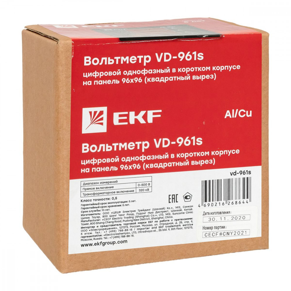 Доставка Вольтметр VD-961s цифровой на панель 96x96 (квадратный вырез) однофазный в коротком корпусе EKF PROxima VD-961s