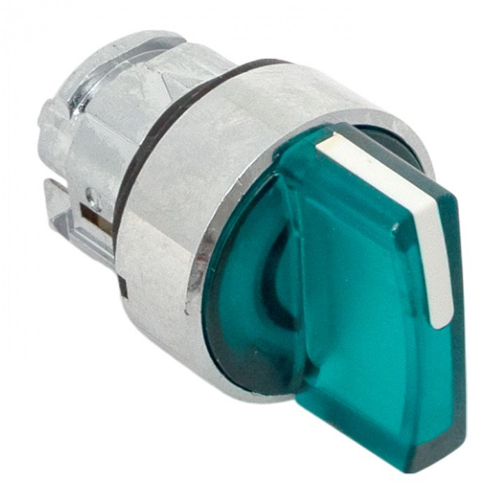 Описание Исполнительный механизм переключателя ХB4 зеленый на 3 положения возвратный без фиксации, с подсветкой с короткой ручк IP65 EKF XB4BD3L-G-65
