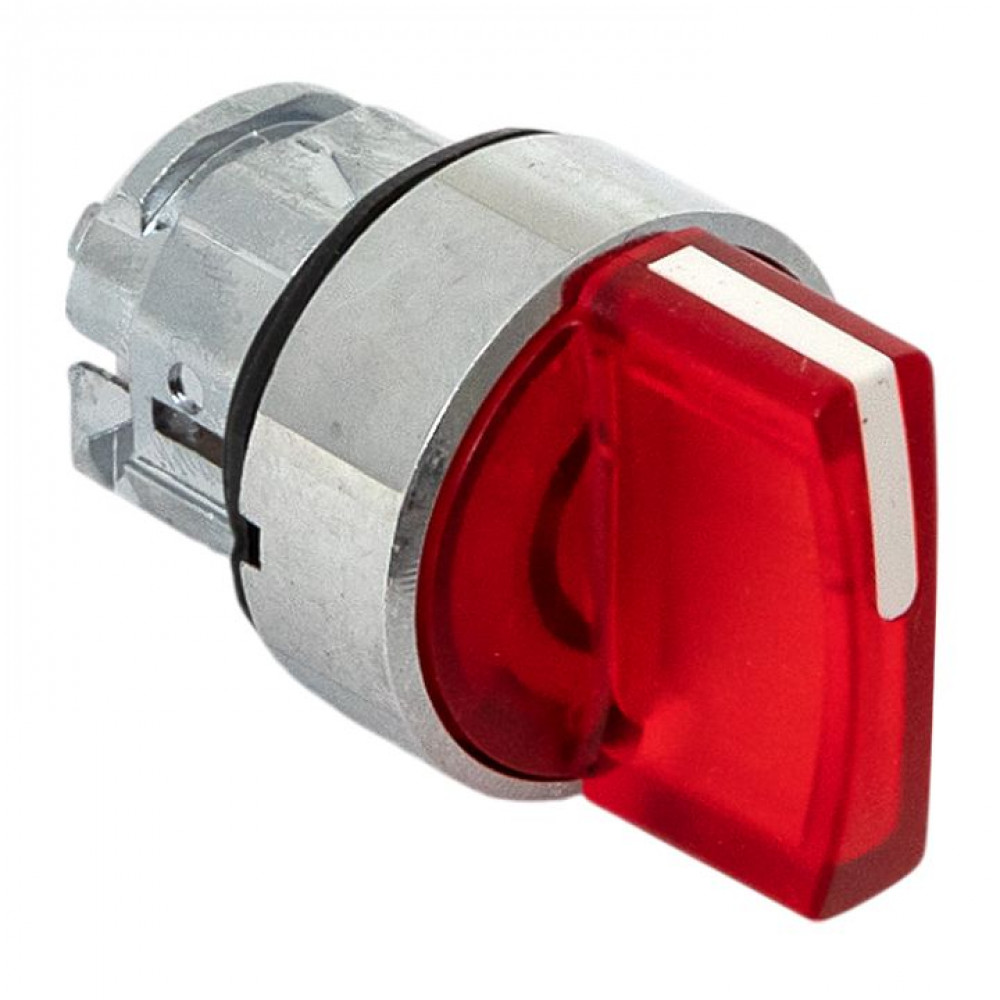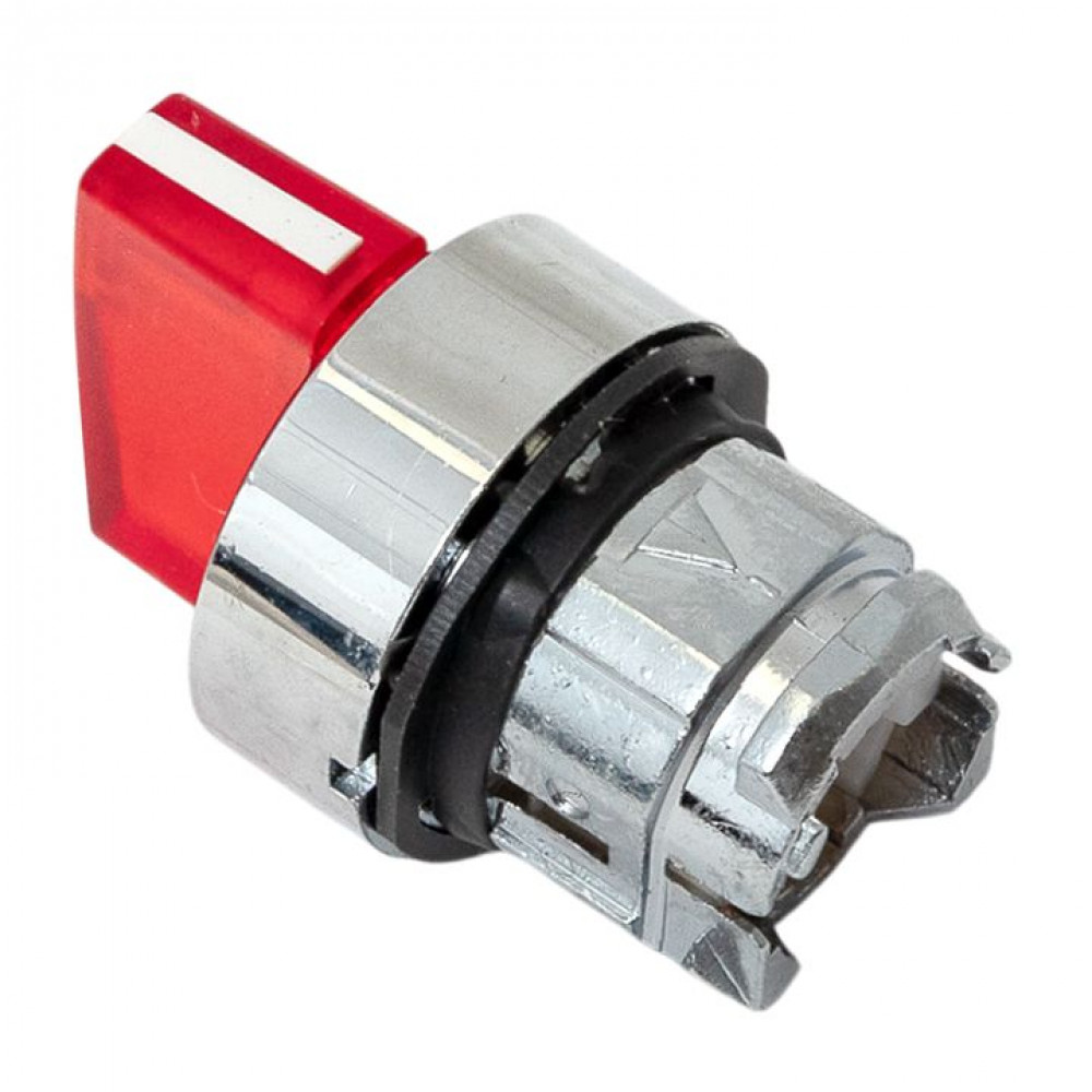 Исполнительный механизм переключателя ХB4 красный на 3 положения возвратный без фиксации, с подсветкой с короткой ручк IP65 EKF XB4BD3L-R-65, Переключатель