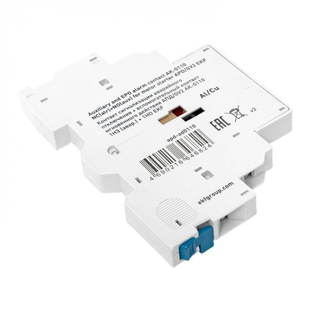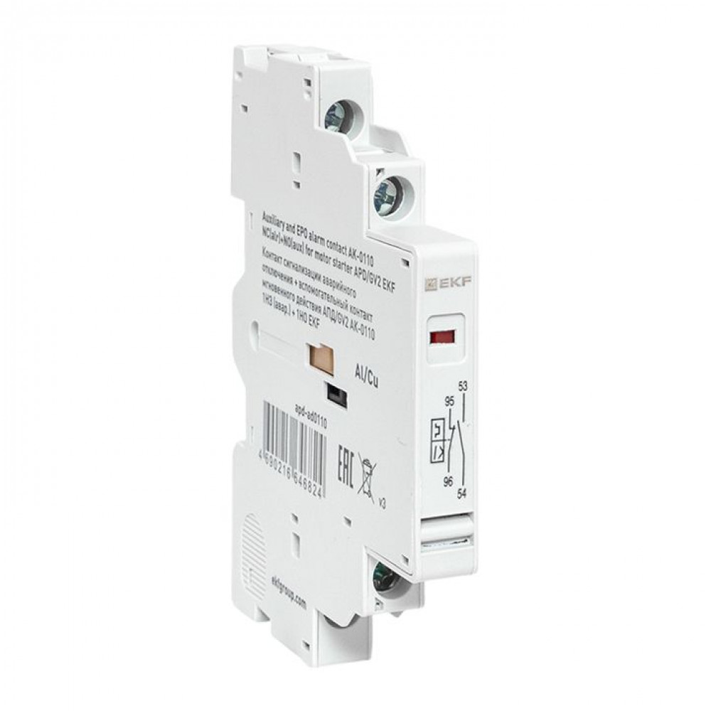 Контакт сигнализации аварийного отключения + вспомогательный контакт мгновенного действия АПД/GV2 АК-0110 1НЗ (авар.) + 1НО EKF apd-ad0110, Элемент вспомогательный и аксессуар к устройству защиты