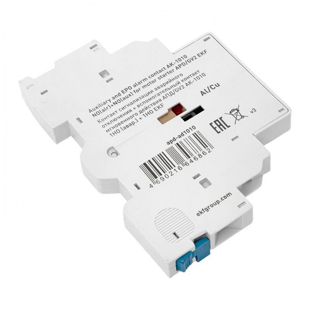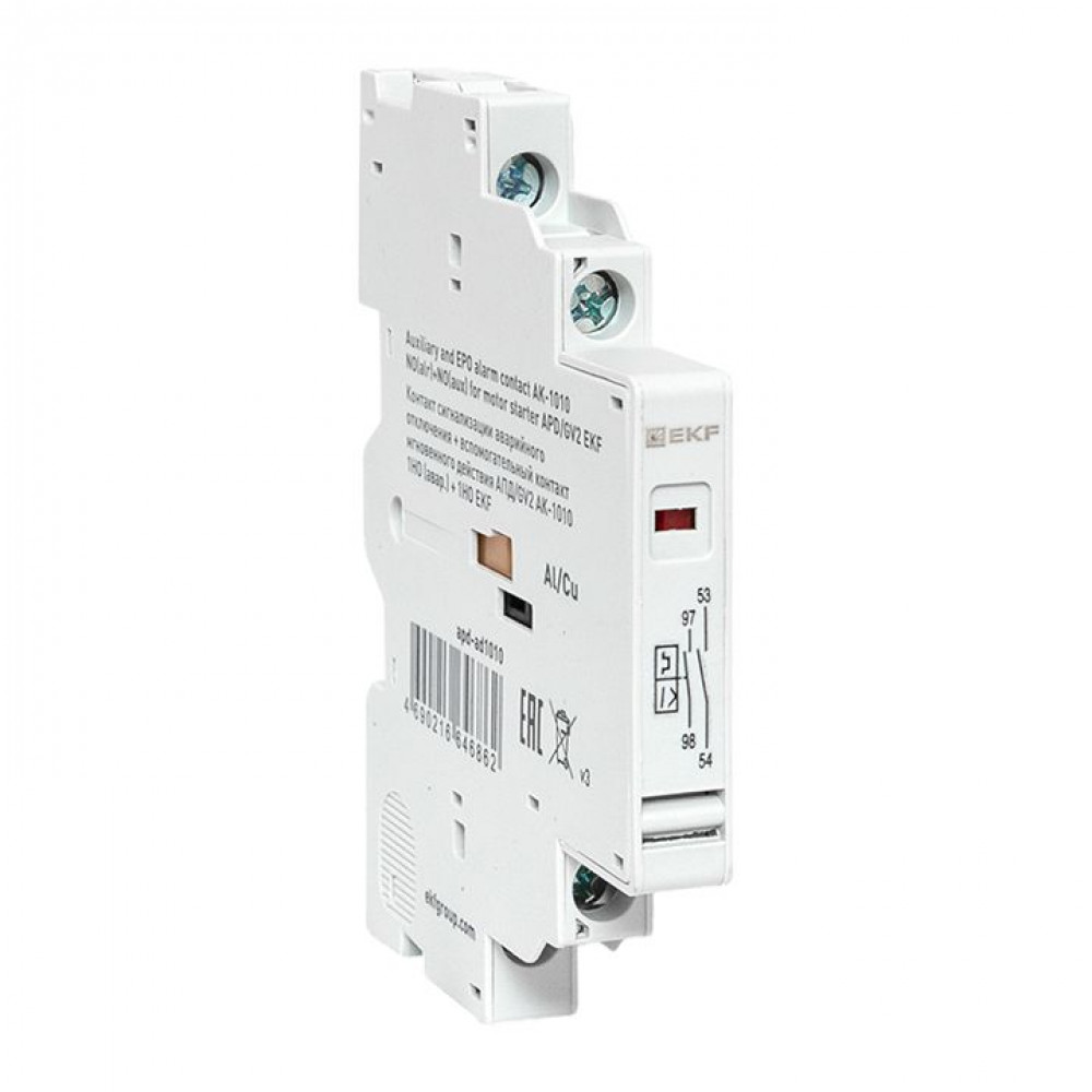 Контакт сигнализации аварийного отключения + вспомогательный контакт мгновенного действия АПД/GV2 АК-1010 1НО (авар.) + 1НО EKF apd-ad1010, Элемент вспомогательный и аксессуар к устройству защиты