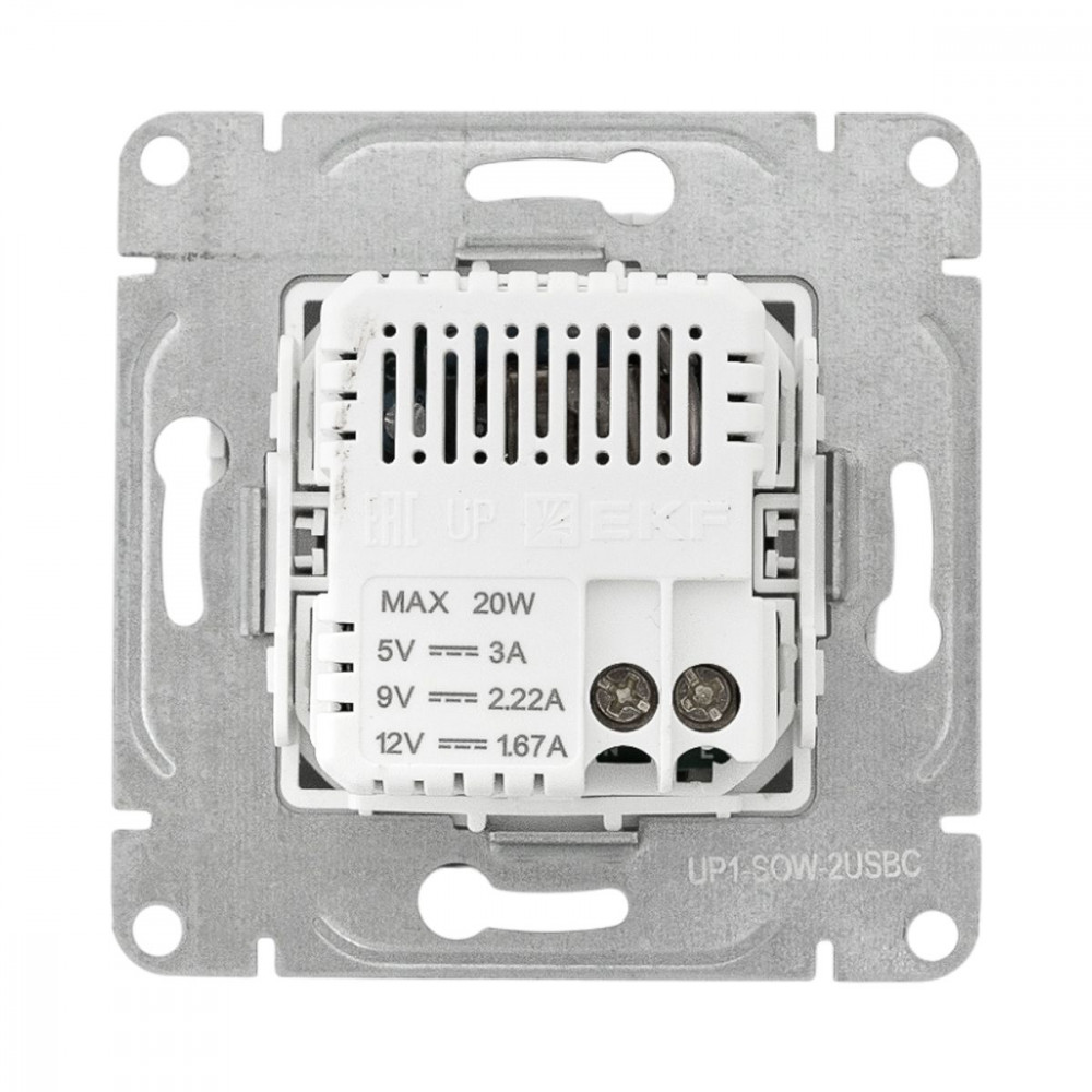 Механизм розетки USB-C - 2шт, белый Эпика EKF UP1-SOW-2USBC, Розетка скрытого монтажа