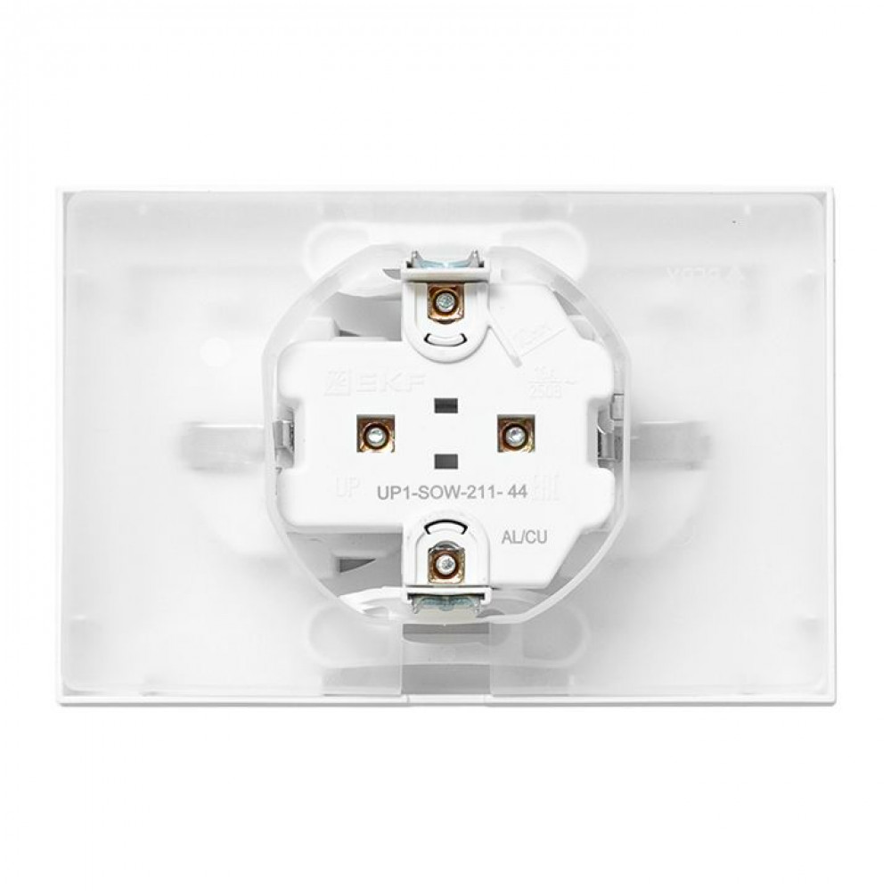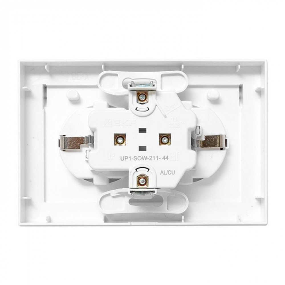 Механизм розетки двойной, 16А, без заземления, без шторок, с рамкой, белый Эпика EKF UP1-SOW-200 →