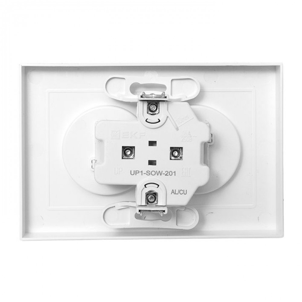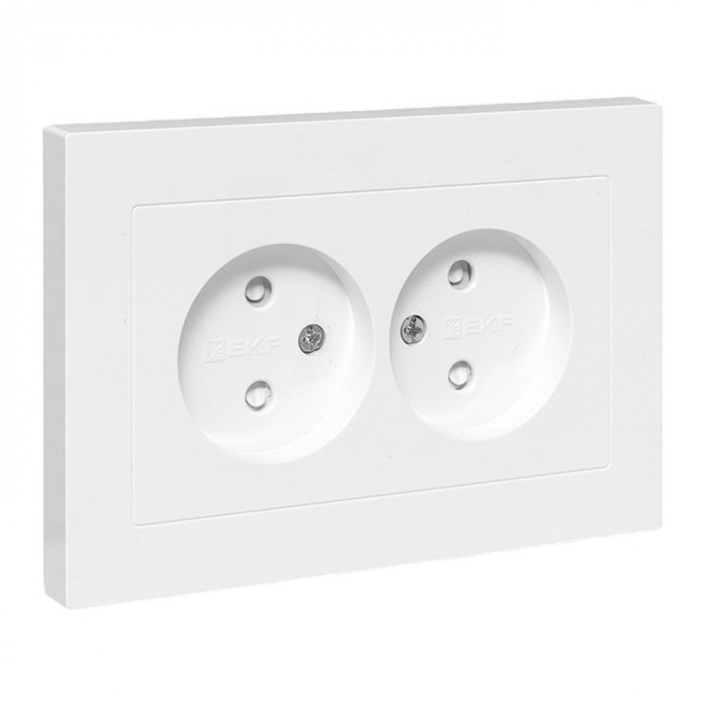 ← Механизм розетки двойной, 16А, без заземления, без шторок, с рамкой, белый Эпика EKF UP1-SOW-200