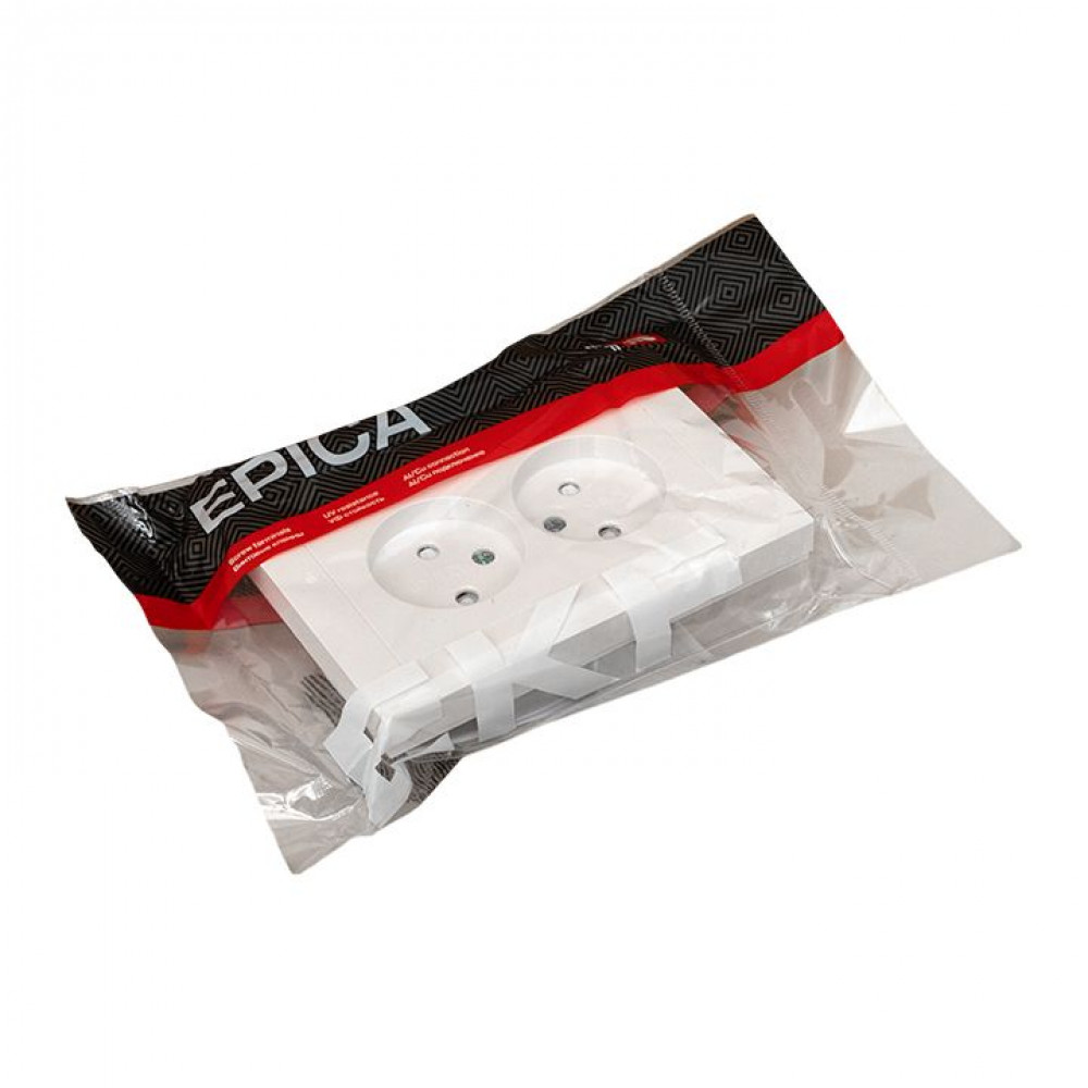 Доставка Механизм розетки двойной, 16А, без заземления, со шторками, с рамкой, белый Эпика EKF UP1-SOW-201