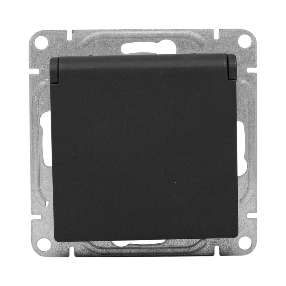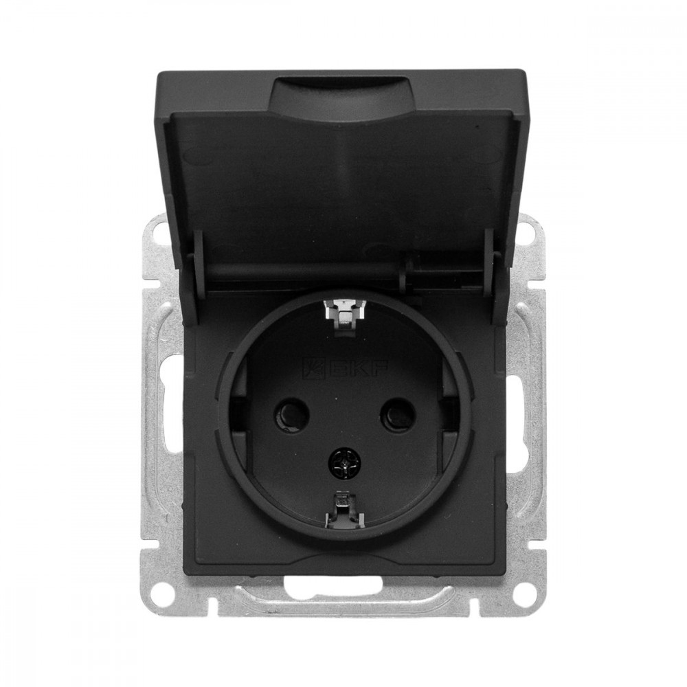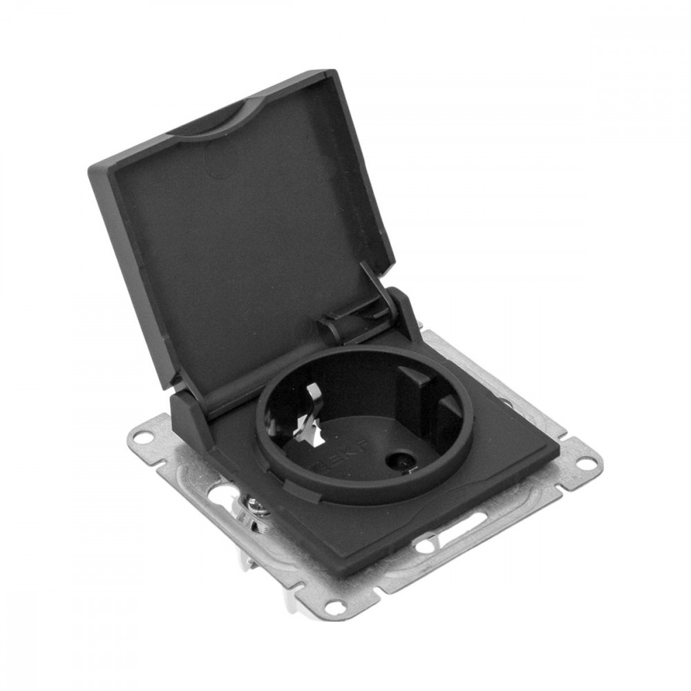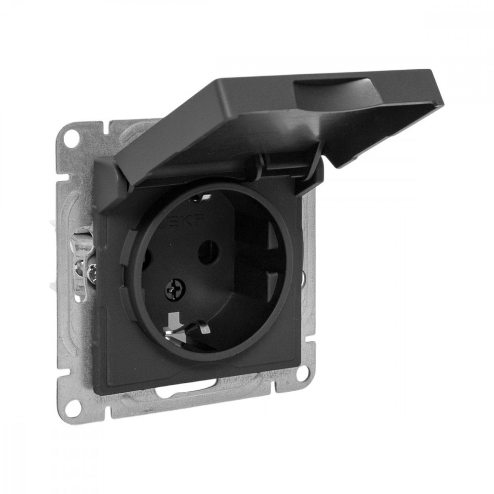 Механизм розетки, 16А, IP44, с заземлением, со шторками, c крышкой, ч-рный Эпика EKF UP1-SOB-111-44, Розетка скрытого монтажа