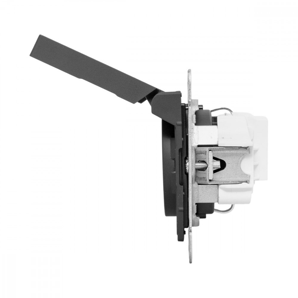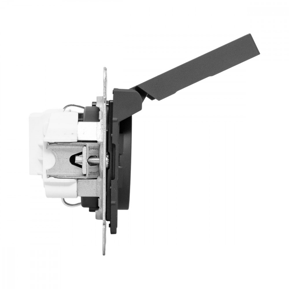 Описание Механизм розетки, 16А, IP44, с заземлением, со шторками, c крышкой, ч-рный Эпика EKF UP1-SOB-111-44
