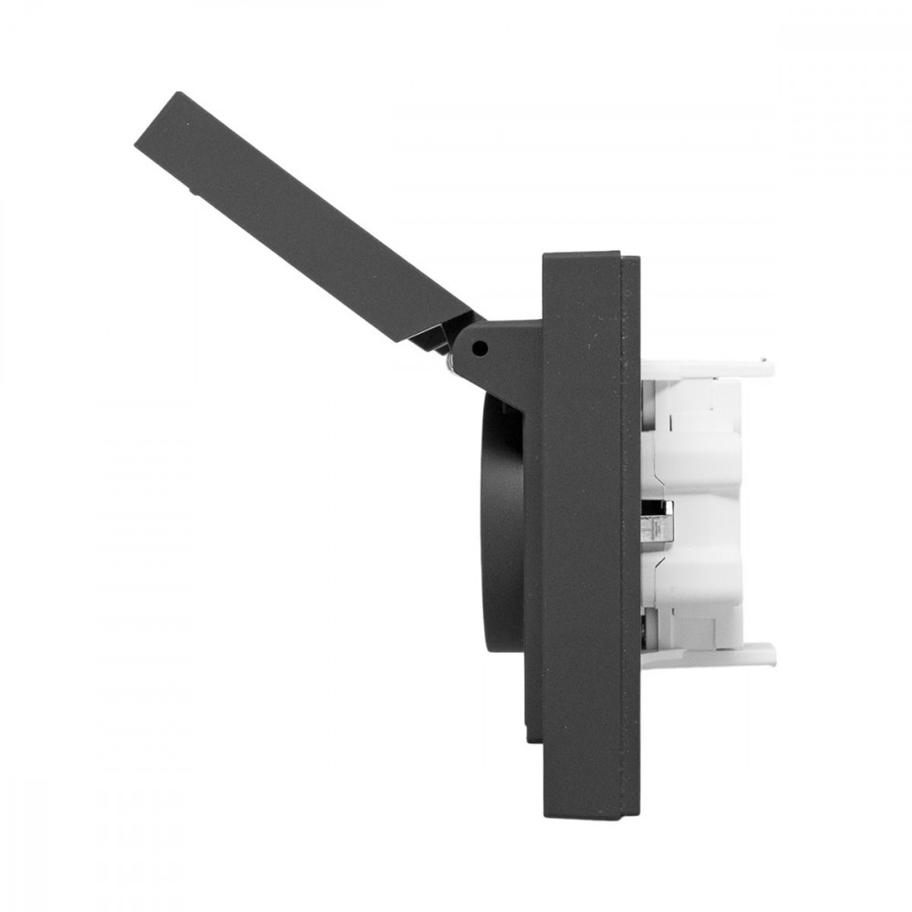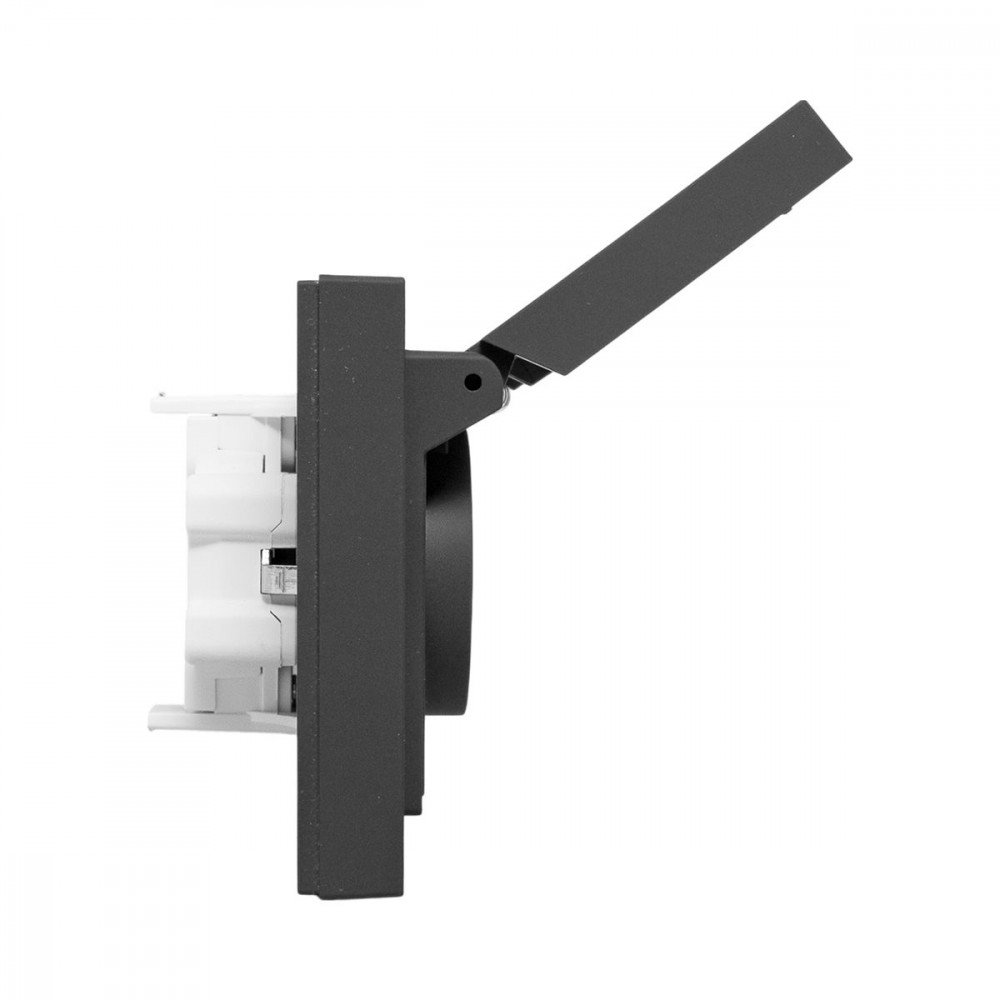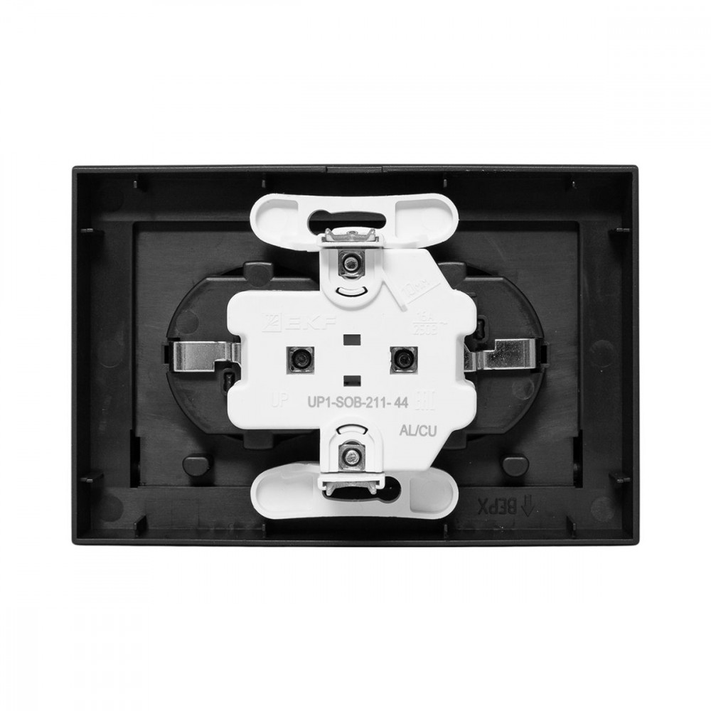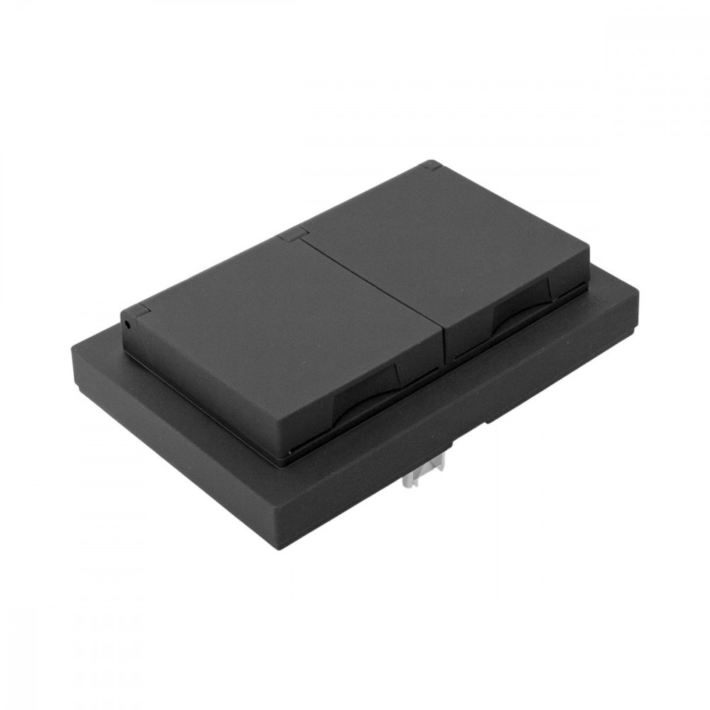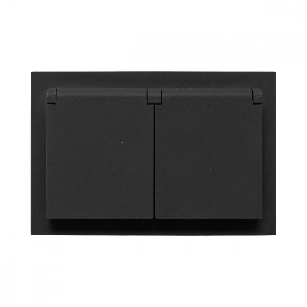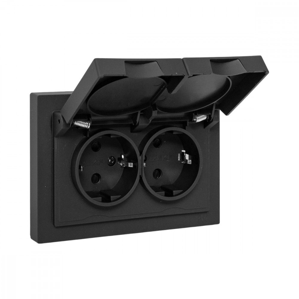 Механизм розетки двойной, 16А, IP44, с заземлением, со шторками, с рамкой, с крышками, ч-рный Эпика EKF UP1-SOB-211-44, Розетка скрытого монтажа