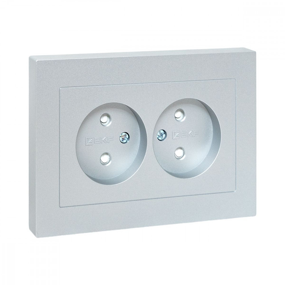 Описание Механизм розетки двойной, 16А, без заземления, со шторками, с рамкой, алюминий Эпика EKF UP1-SOA-201