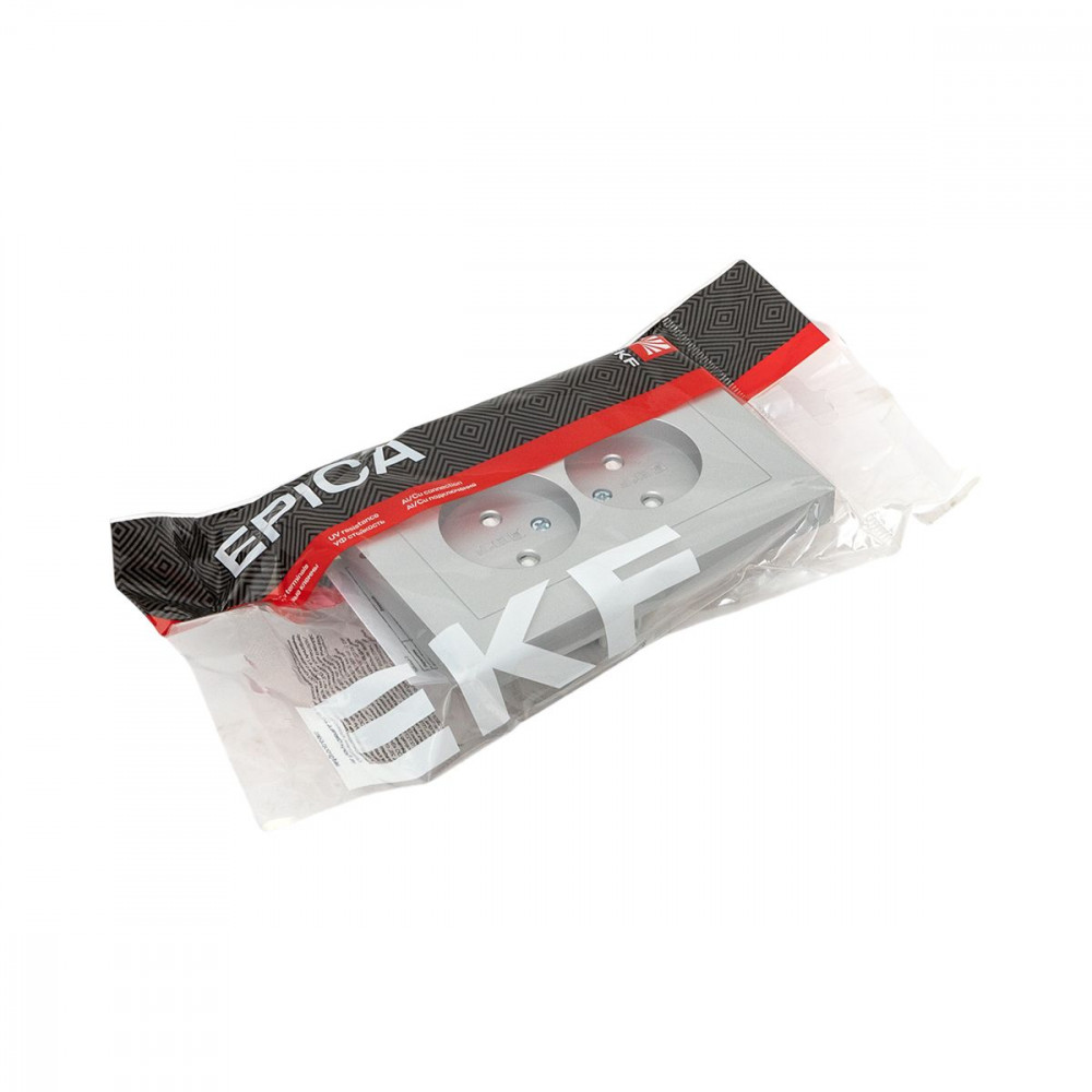 ← Механизм розетки двойной, 16А, без заземления, без шторок, с рамкой, алюминий Эпика EKF UP1-SOA-200