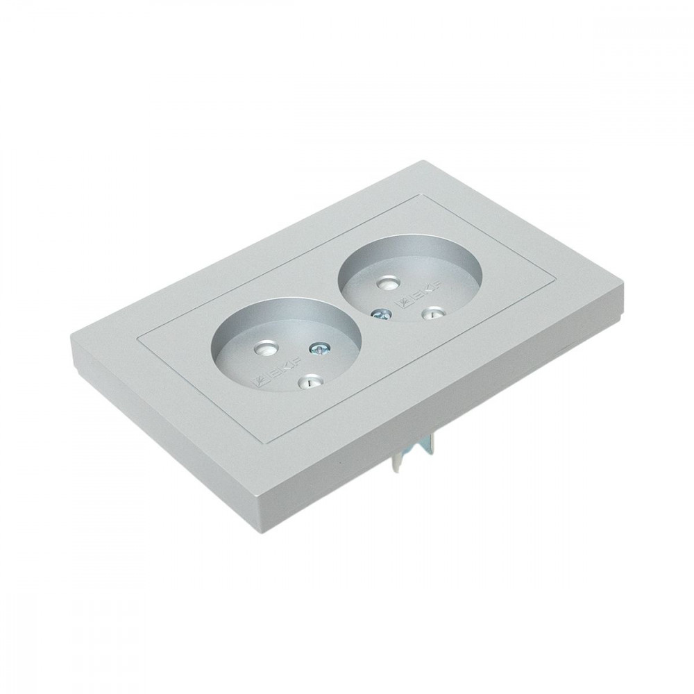 Доставка Механизм розетки двойной, 16А, без заземления, со шторками, с рамкой, алюминий Эпика EKF UP1-SOA-201