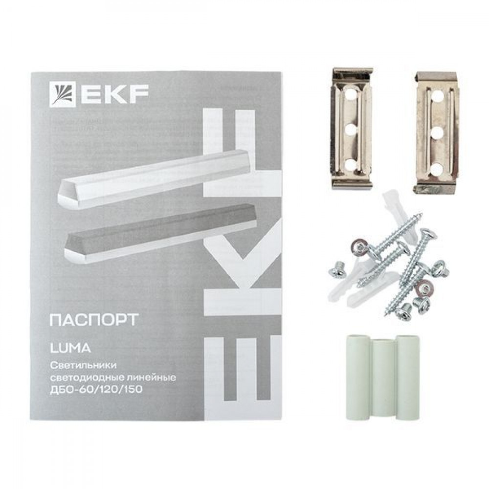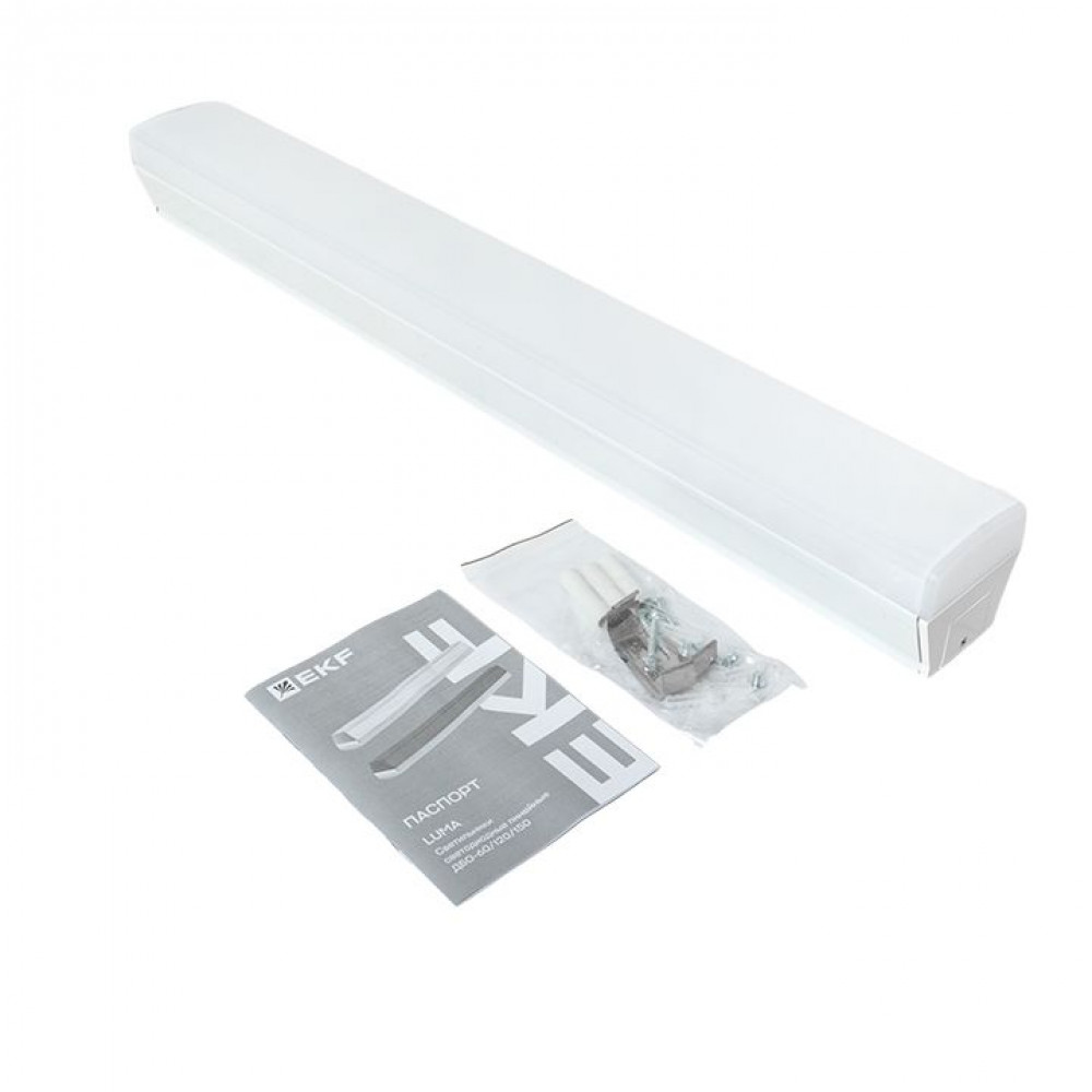← Светильник светодиодный линейный ДБО-60 белый 24Вт 4000К 590x65x70 IP20 LUMA EKF LBL-60-24-W-4000