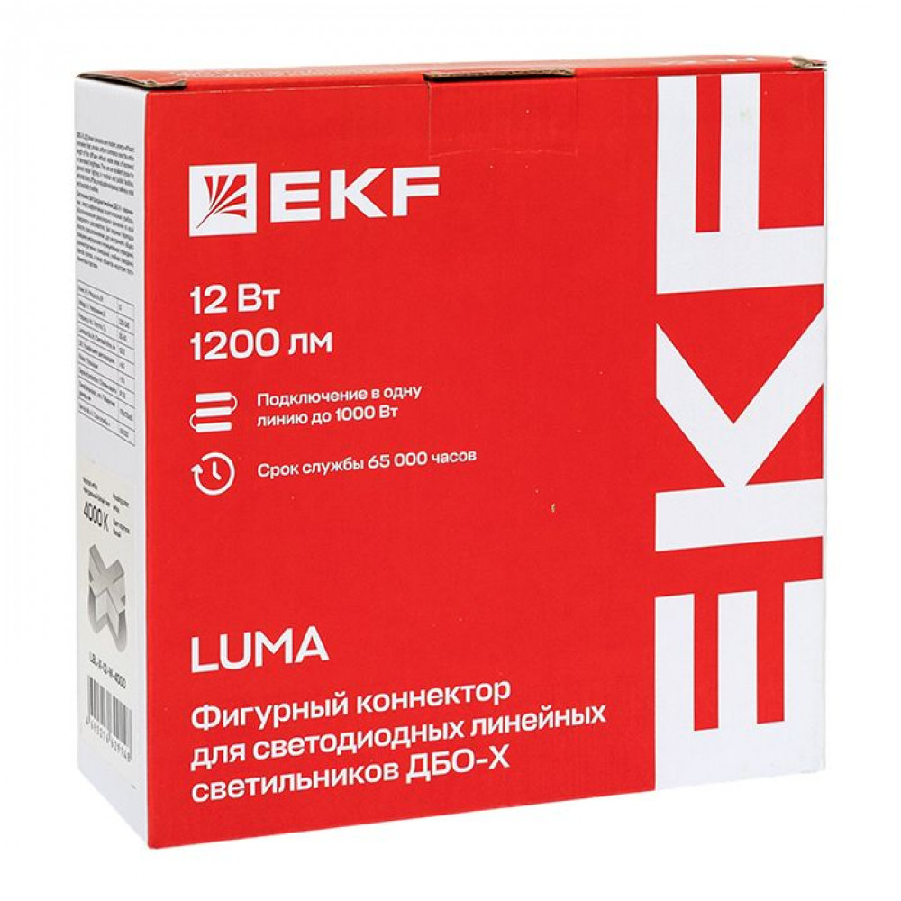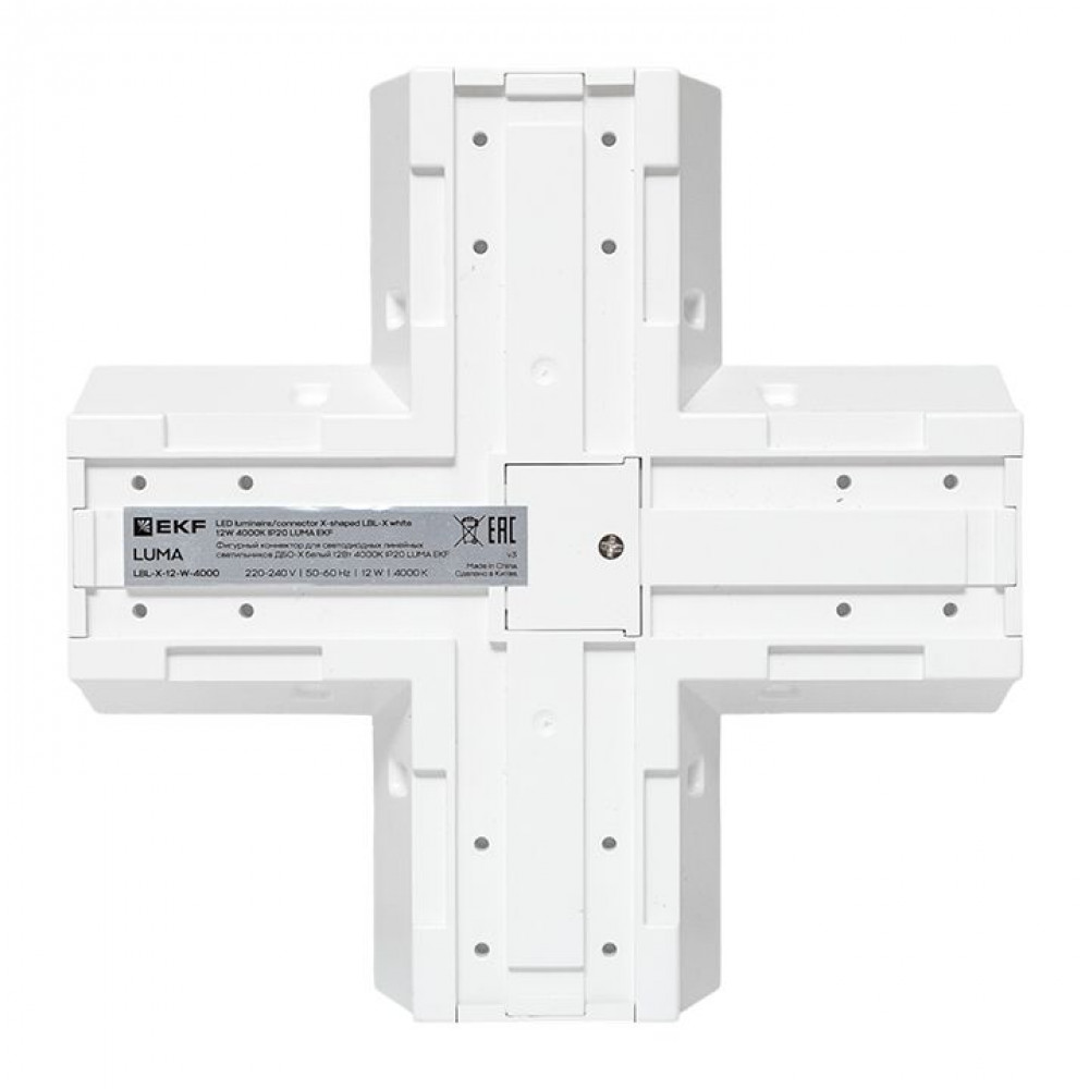 Описание Фигурный коннектор для светодиодных линейных светильников ДБО-X белый 12Вт 6500К IP20 LUMA EKF LBL-X-12-W-6500