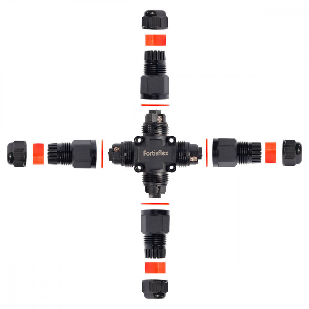 Доставка FFC-41/3Р-IP68 , Кабельный коннектор разветвитель X-образный герметичный, 3 контакта сечение жил от 0.5 до 4мм2, внешний диаметр кабеля от 6 до 10мм, IP68