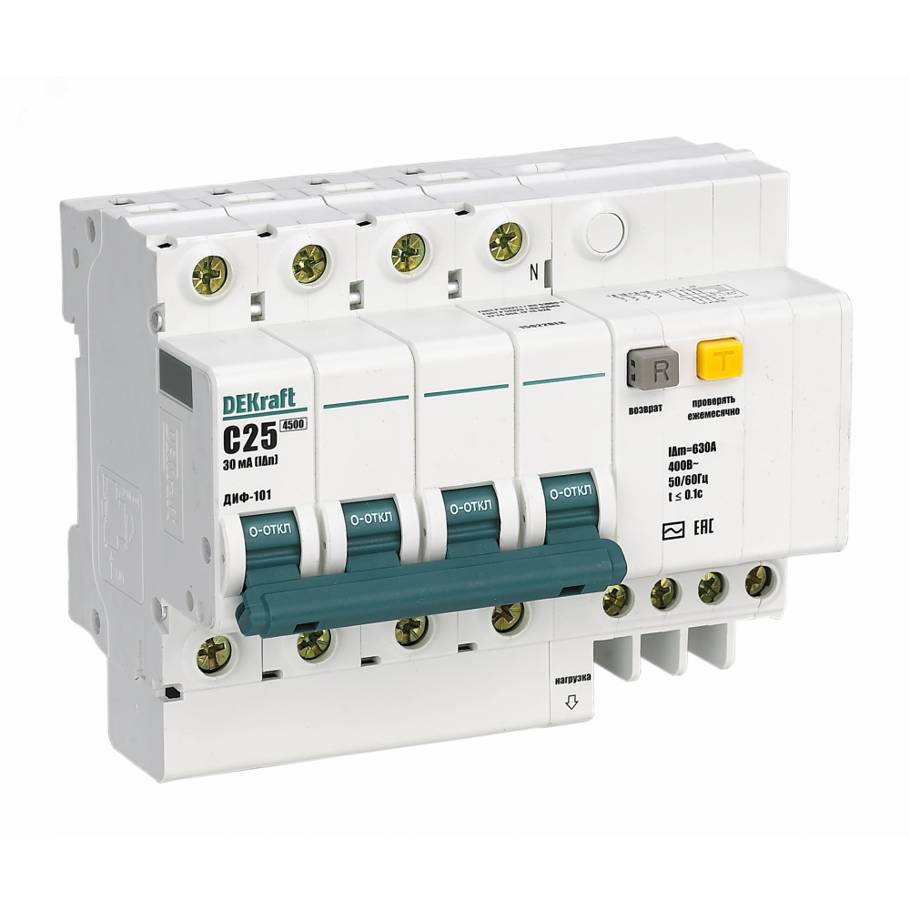 Доставка Выключатель автоматический дифференциальный АВДТ 4П 60А 300мА тип АС ДИФ-101 4.5кА с защитой от сверхтоков 15049DEK