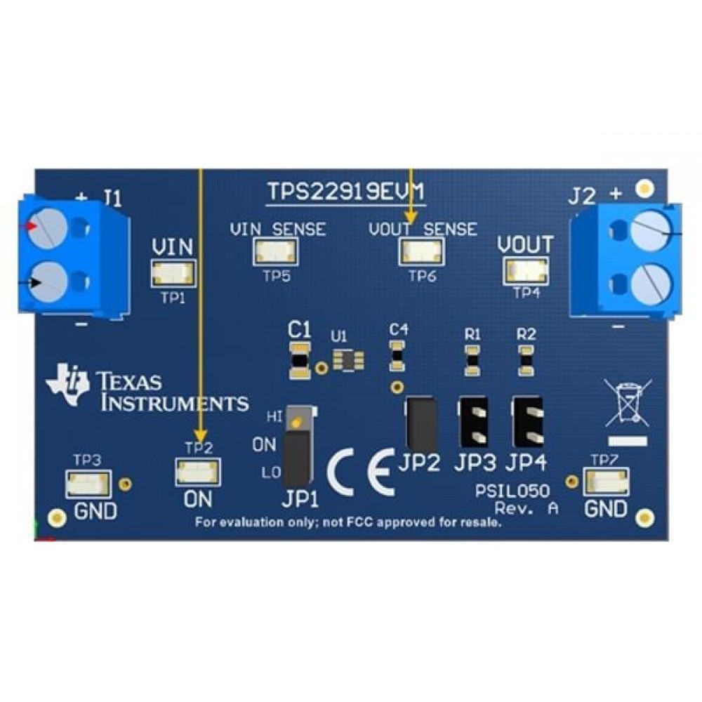 Доставка TPS22919EVM , Средства разработки интегральных схем (ИС) управления питанием TPS22919 5.5V;1.5A;100m On-Resistance Load Switch Evaluation Module
