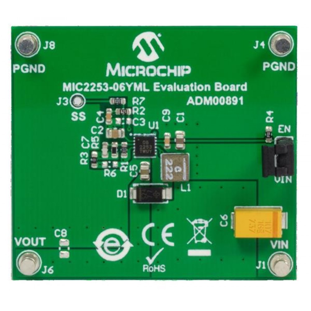 ADM00891, Средства разработки интегральных схем (ИС) управления питанием MIC2253 3.5A 1MHz Boost Reg Eval Board