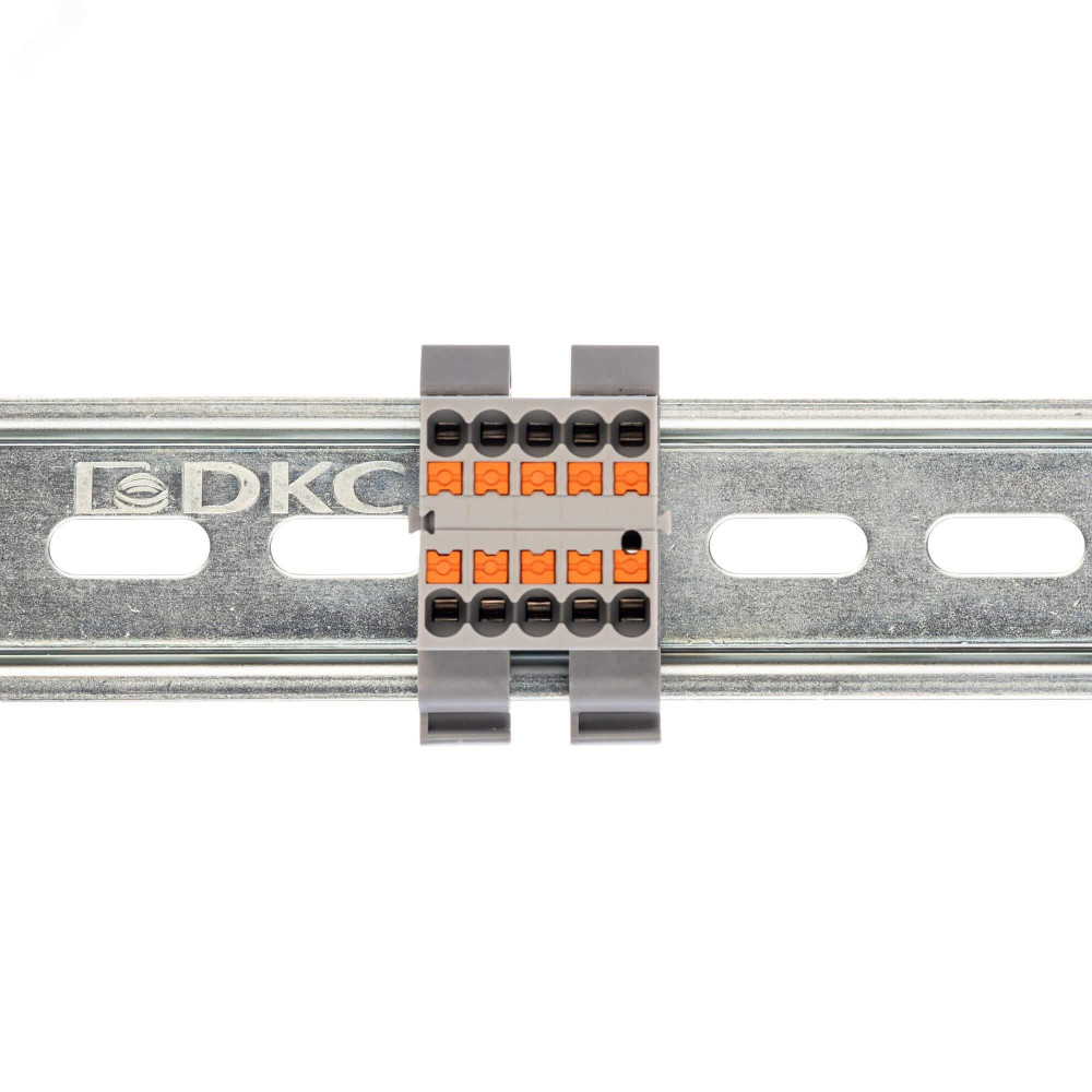Описание Блок распределительный с гориз. адаптером на рейку шириной 35мм, зажим push-in, 10 точек подключения 2,5 кв.мм, серый DTP1-010-04SPUG-H