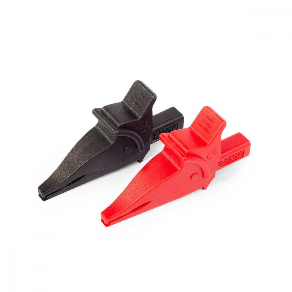 Зажимы для создания соединительных, измерительных и подстыковочных проводов, в комплекте: красный и черный зажимы «крокодил», крепление на резьбе М4, ток 10 А