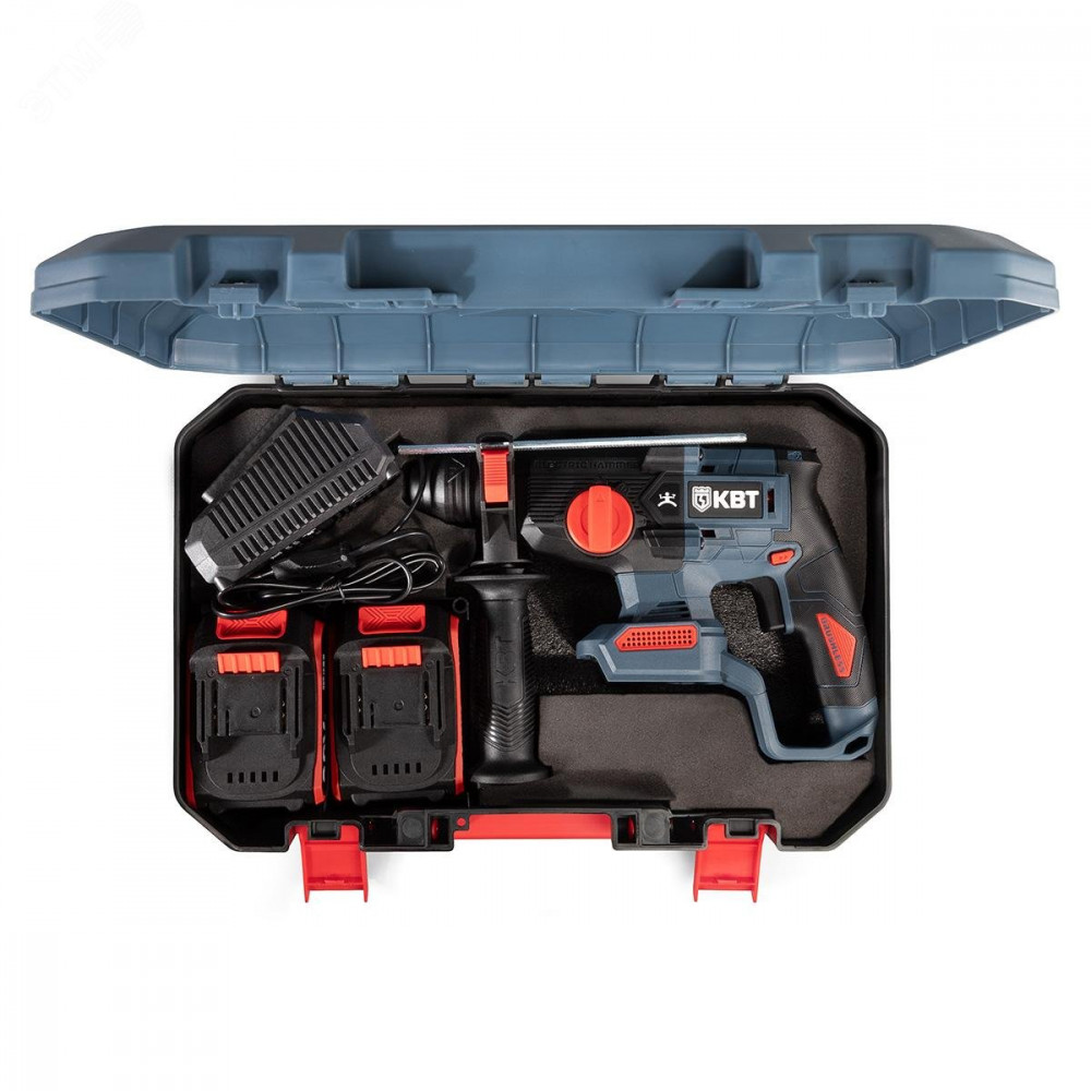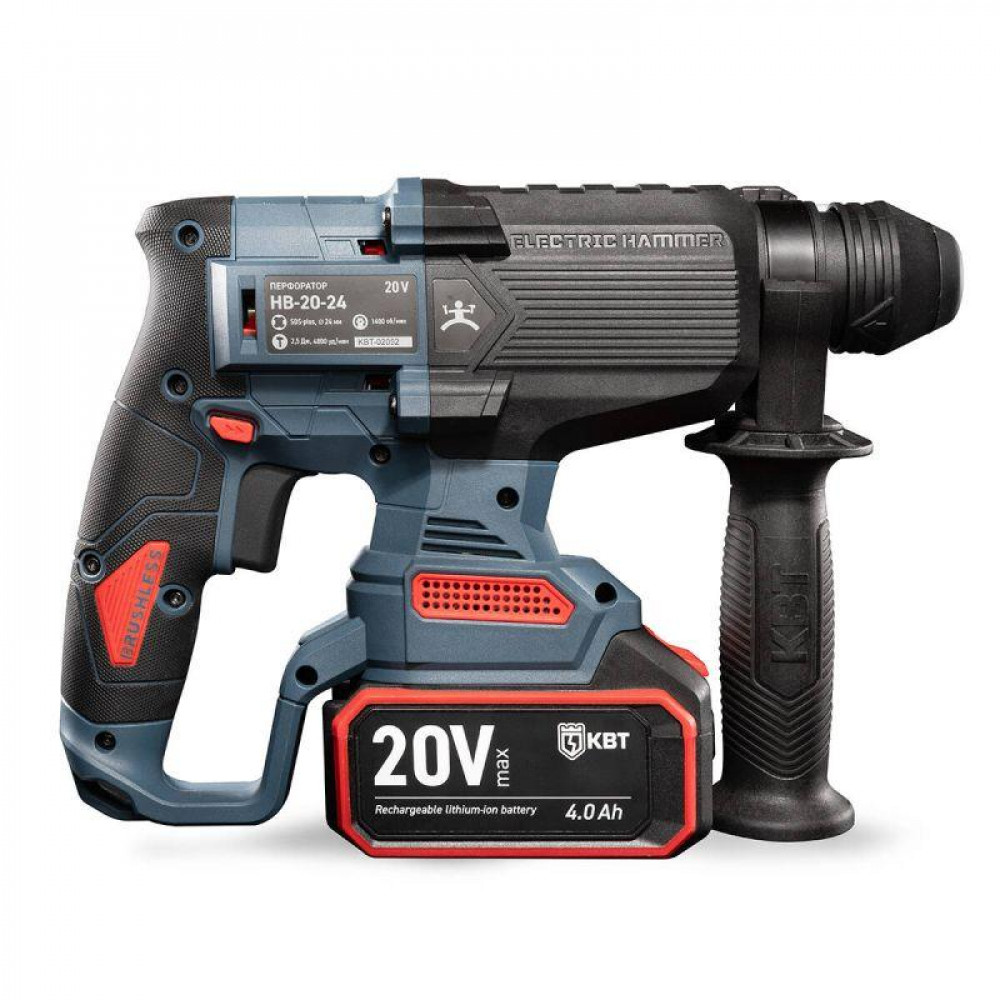 Перфоратор аккумуляторный 20V бесщеточный с максимальным размером оснастки SDS-Plus до 24 мм, 2 аккумуляторные батареи: Li-ion, 20 В/4Ач, зарядное устройство, кейс