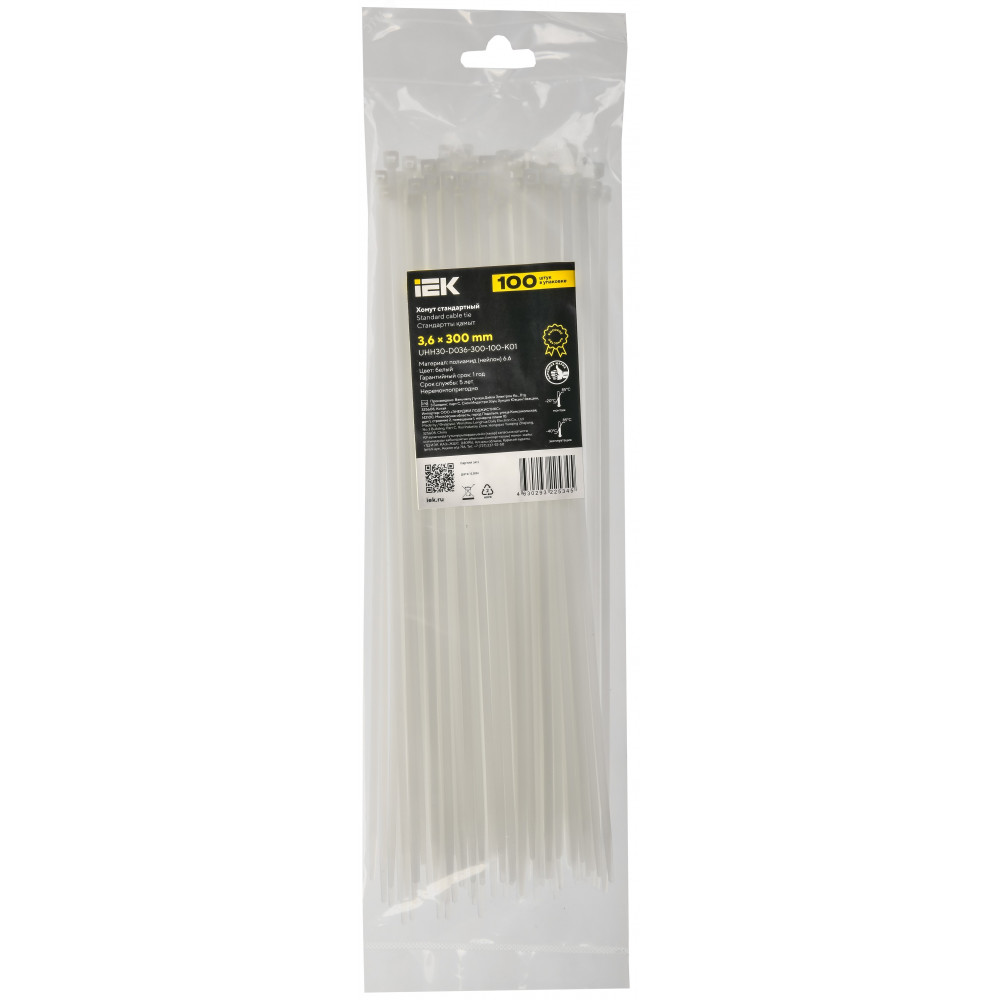 Хомут 3.6х300мм P6.6 стандартный бел. (уп.100шт) IEK UHH30-D036-300-100-K01
