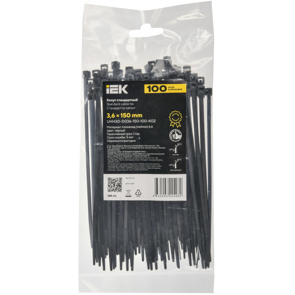 Описание Хомут 3.6х150мм P6.6 стандартный черн. (уп.100шт) IEK UHH30-D036-150-100-K02