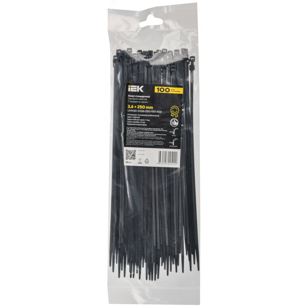 Хомут 3.6х250мм P6.6 стандартный черн. (уп.100шт) IEK UHH30-D036-250-100-K02
