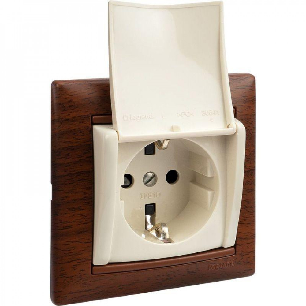 Розетка 1-м СП Valena 16А IP21 2P+E с заземл. защ. шторки с крышкой винты механизм сл. кость IEK 774322, Розетка скрытого монтажа