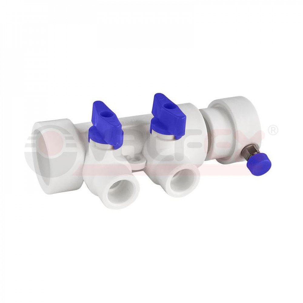 Описание Коллектор PPR с отсечными син. кранами и воздух-ком 40х20 8 выходов (15/1) бел. K VALFEX 111134008