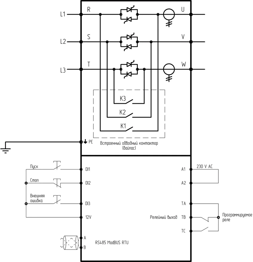 Устройство плавного пуска УПП 11 кВт 22.0А, 3 ~ 400 380B, IP20, байпас встроен 00064100, Устройство плавного пуска
