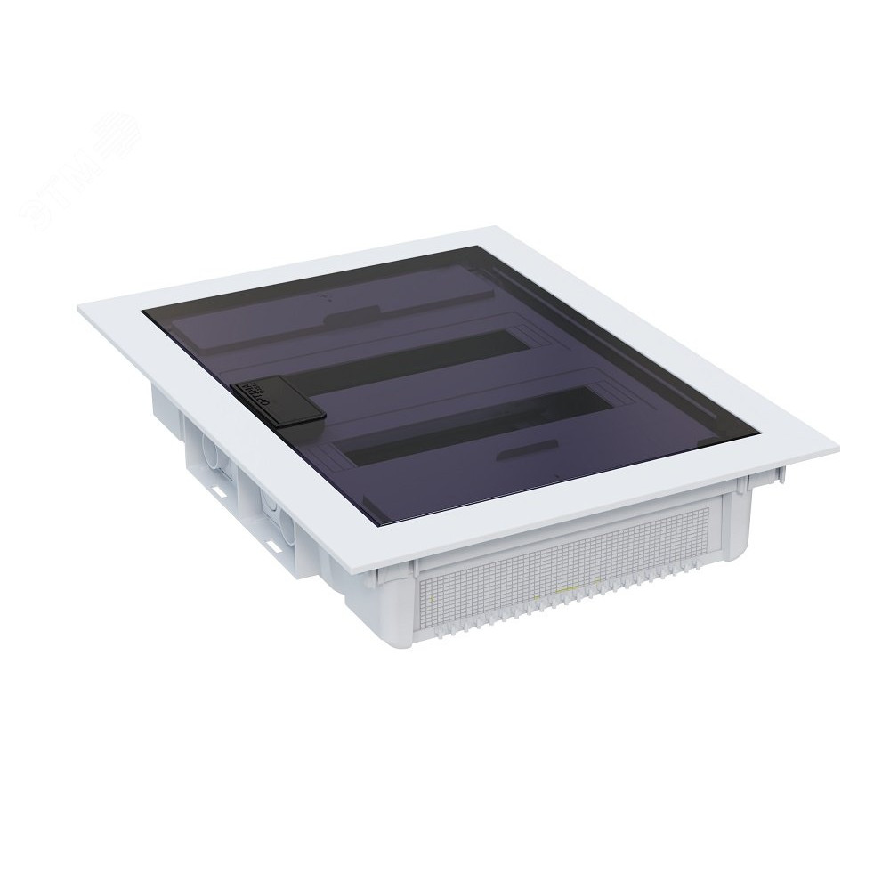 Описание Щит распределительный встраиваемый с пластиковой черной прозрачной дверцей на 24 модуля, OptiBox Pro 24-VKR-IP40 379800