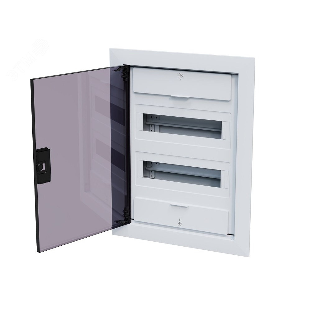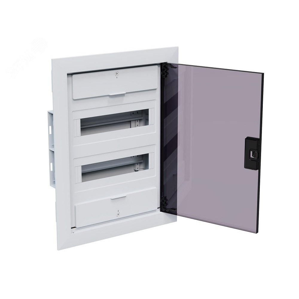 Щит распределительный встраиваемый с пластиковой черной прозрачной дверцей на 24 модуля, OptiBox Pro 24-VKR-IP40 379800, Щит распределительный