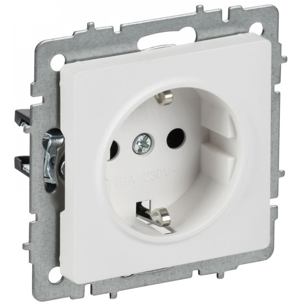 BRITE Розетка 1-местная с заземлением без защитных шторок 16А РС11-1-0-БрАБ арктический белый IEK BR-R11-16-K91, Розетка скрытого монтажа