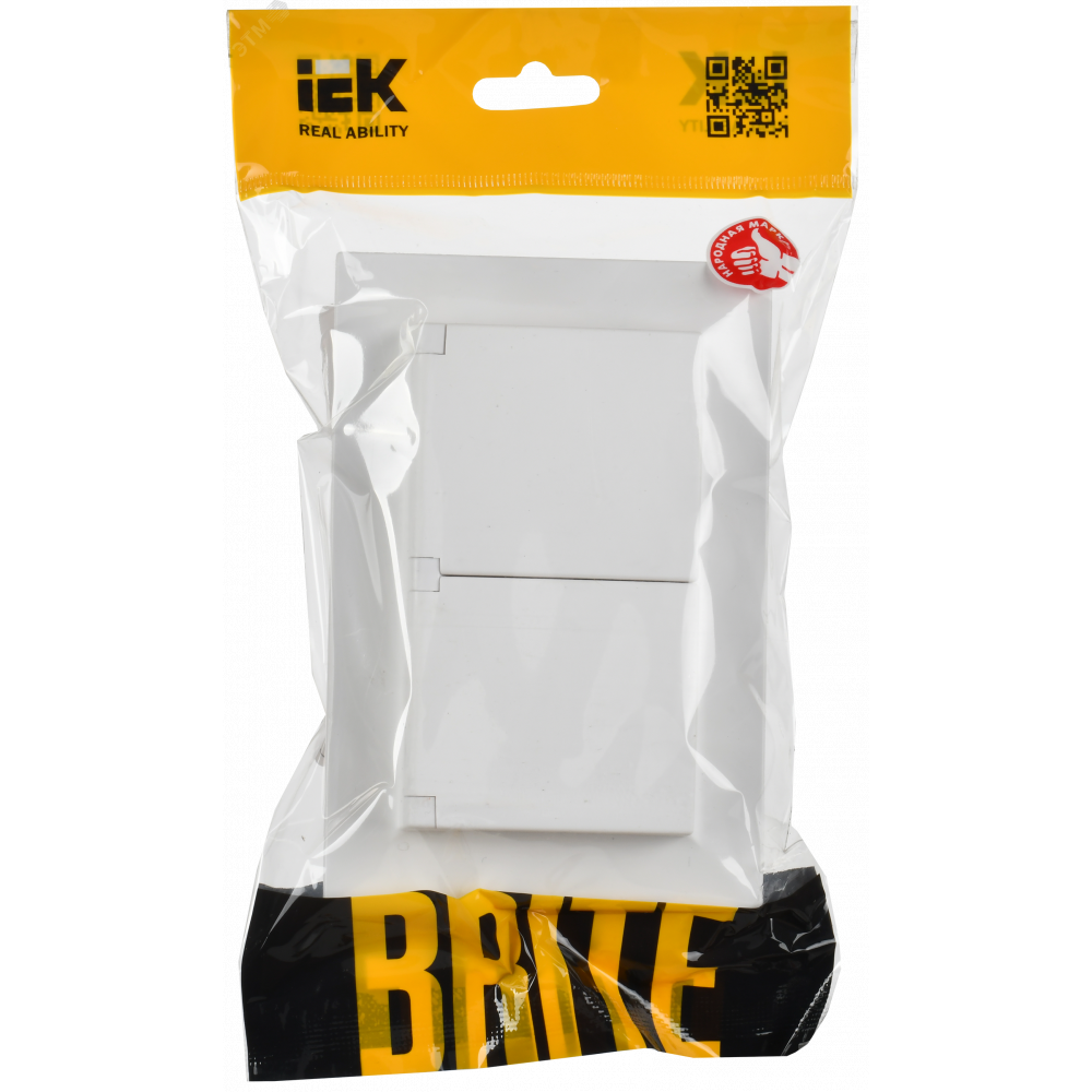 BRITE Розетка 2-местная с заземлением с защитными шторками и крышкой 16А в сборе IP44 РСбш12-3-44-БрАБ арктический белый IEK BR-R26-16-44-K91-F, Розетка скрытого монтажа