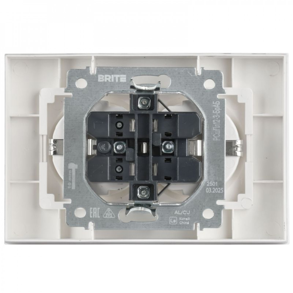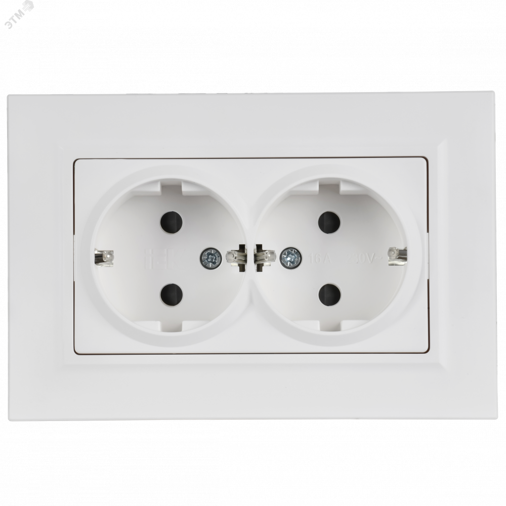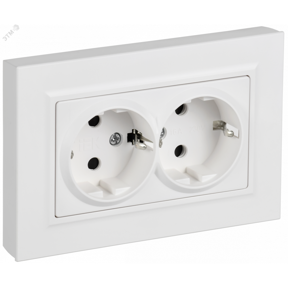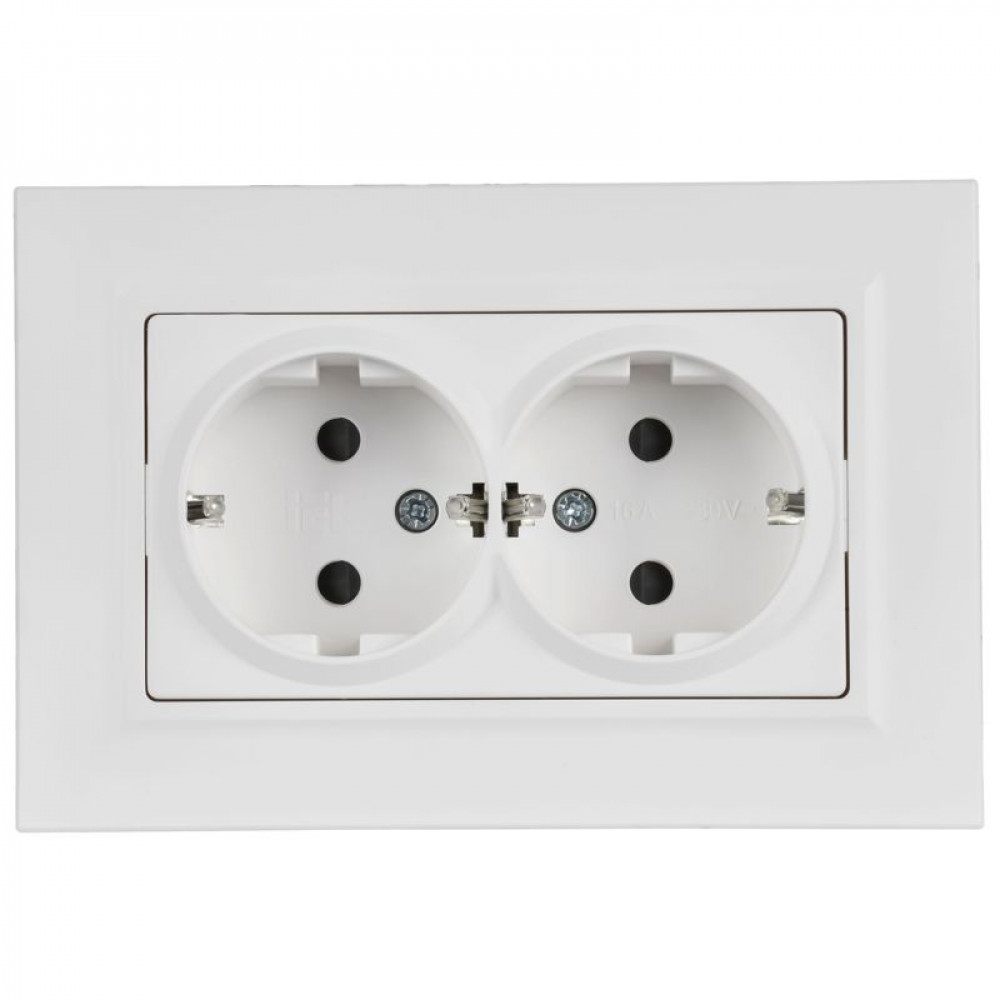 BRITE Розетка 2-местная с заземлением с защитными шторками плоская 16А в сборе РСшПл12-3-БрАБ арктический белый IEK BR-R28-16-K91-F, Розетка скрытого монтажа