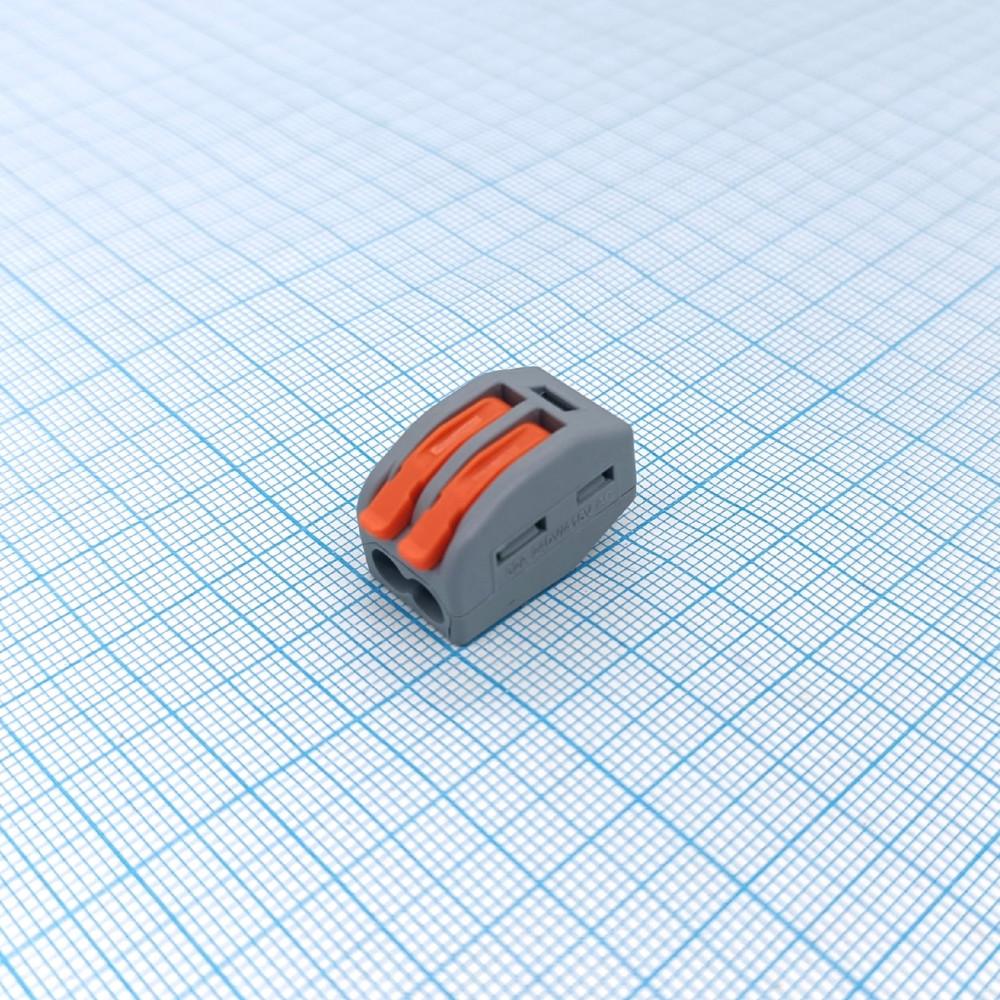 Клемма соединительная на 2 контакта, рычажный прижим проводов сечением 0.08-4мм2
