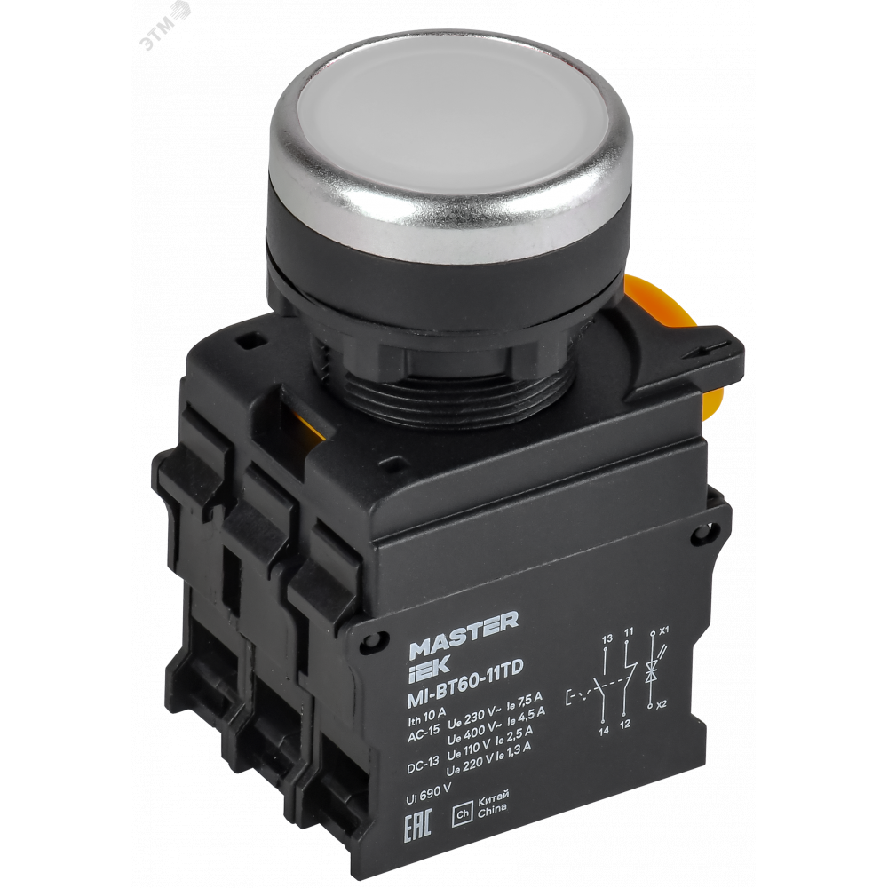 Кнопка с подсвет. и фикс. d=22мм 1NO+1NC белая MASTER MI-BT60-11TD-3-11-K01, Кнопка