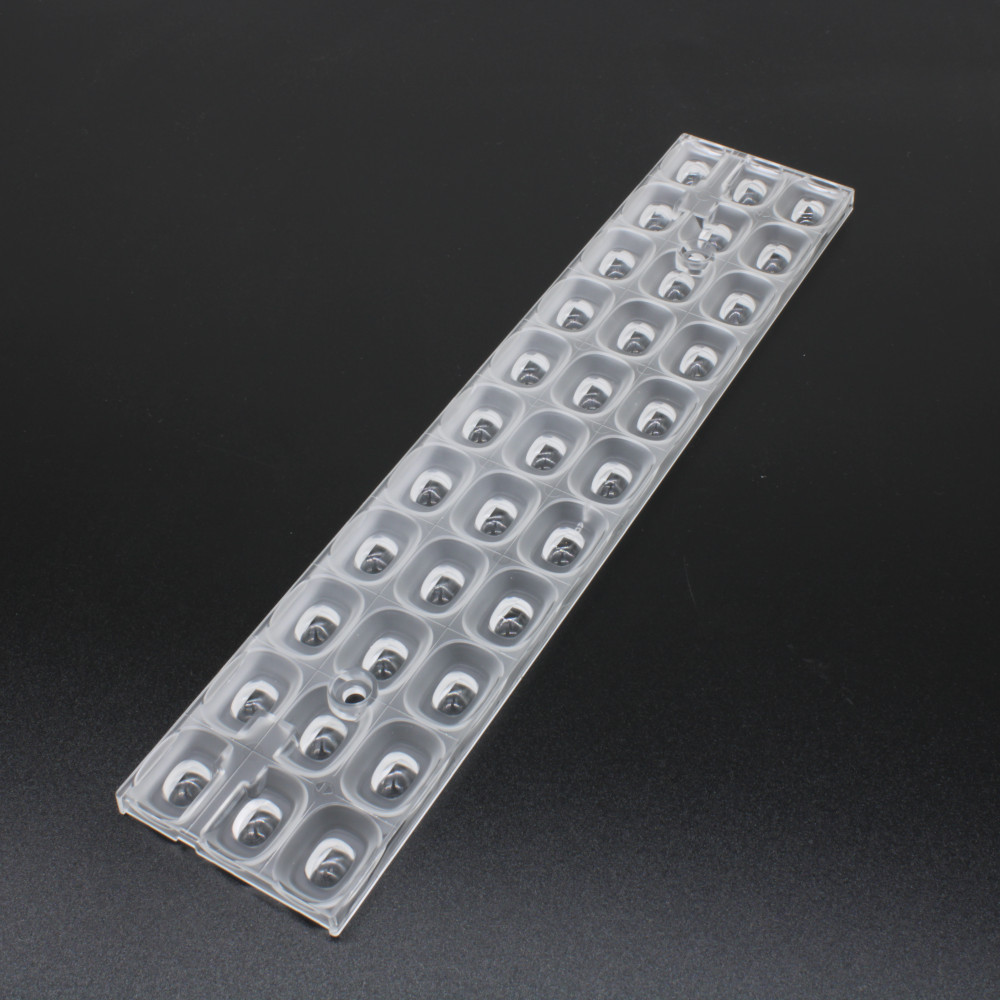 Групповая прямоугольная линза 33 светодиодов 2835/3030/5050, эфф=93%, двойная ассиметрия 25° - штаны, 286x61мм, PMMA