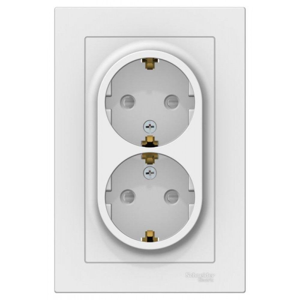 Розетка двойная AtlasDesign с заземл. со шторками 16А в сборе лотос SE ATN001326, Розетка скрытого монтажа