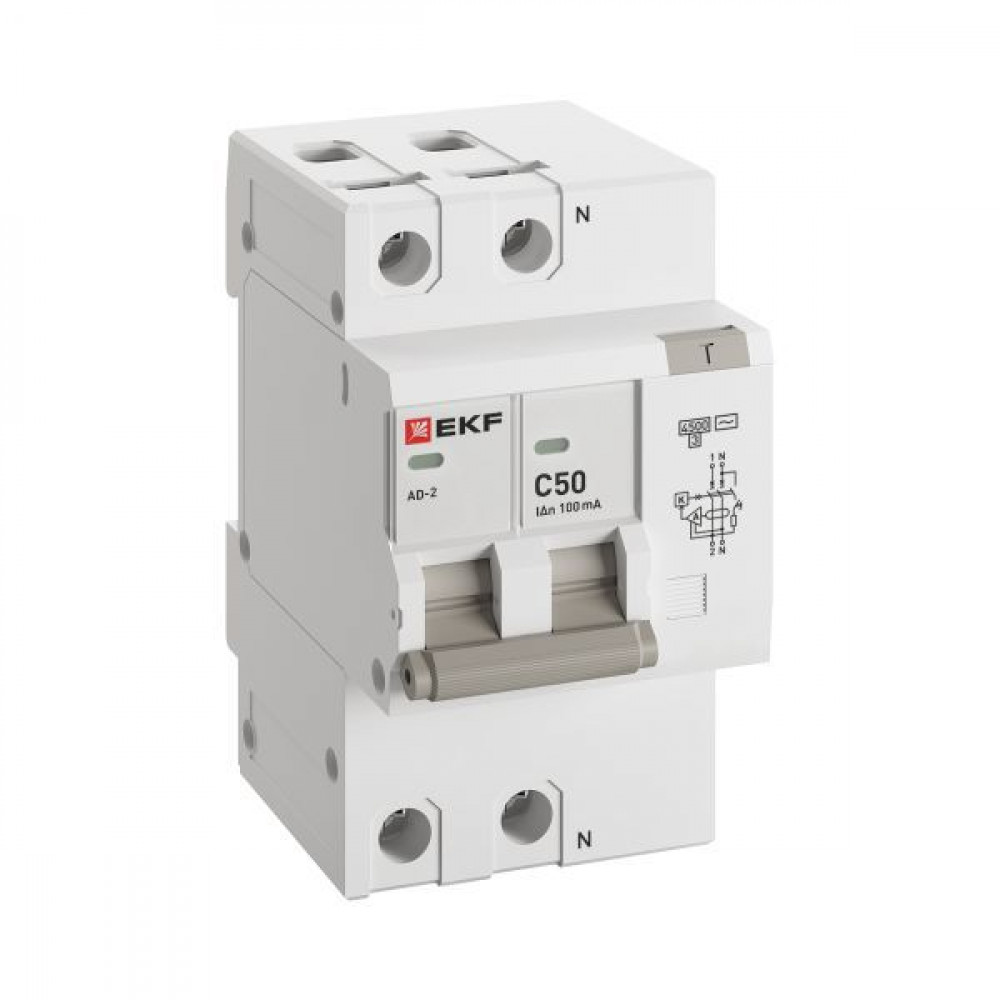 Выключатель автоматический дифференциального тока 2п 50А 100мА АД-2 PROxima EKF DA2-50-100-pro, Дифференциальная защита: УЗО, дифф блок