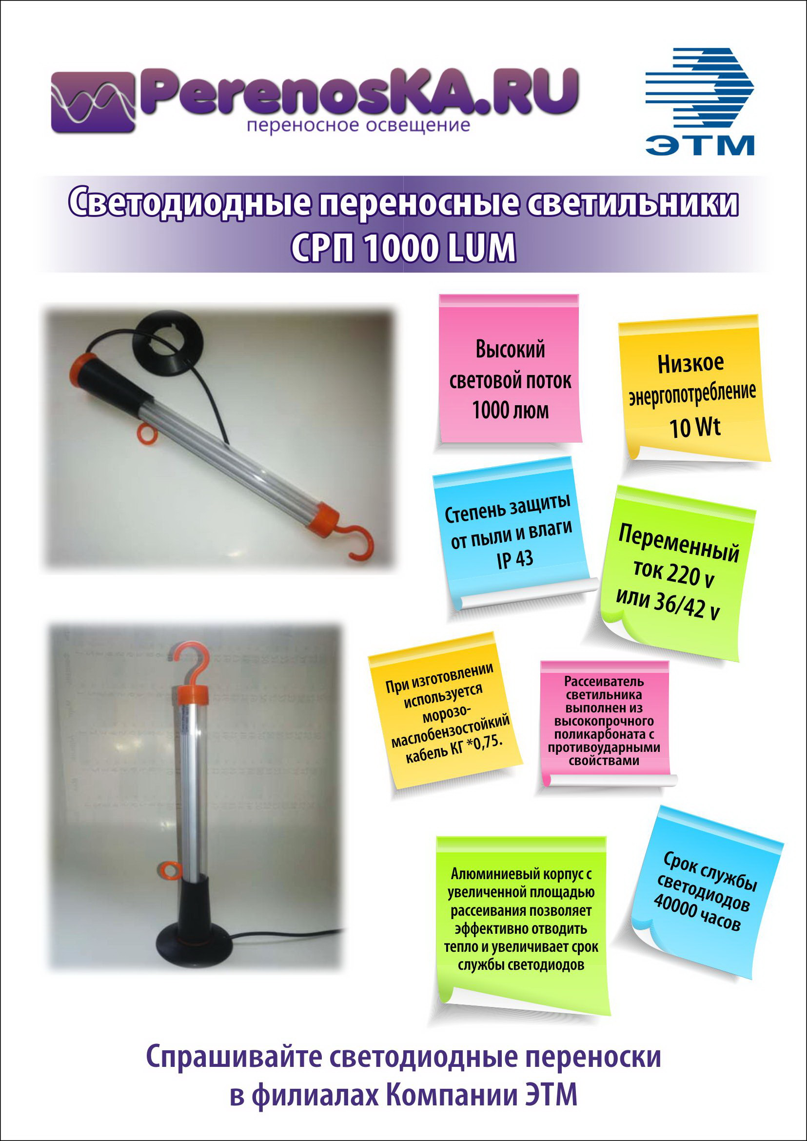 Доставка Светильник светодиодный LED -1000Лм 36в 10м переносной с выключателем IP43 42062