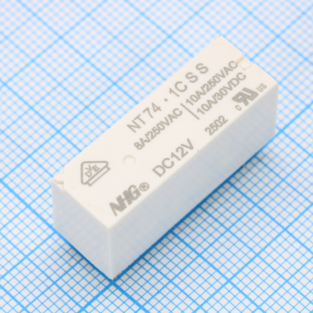 NT74-1C-S-S-8-DC12V, Реле силовое 8А одна группа на переключение катушка 12В 0.23Вт монтаж в отверстие