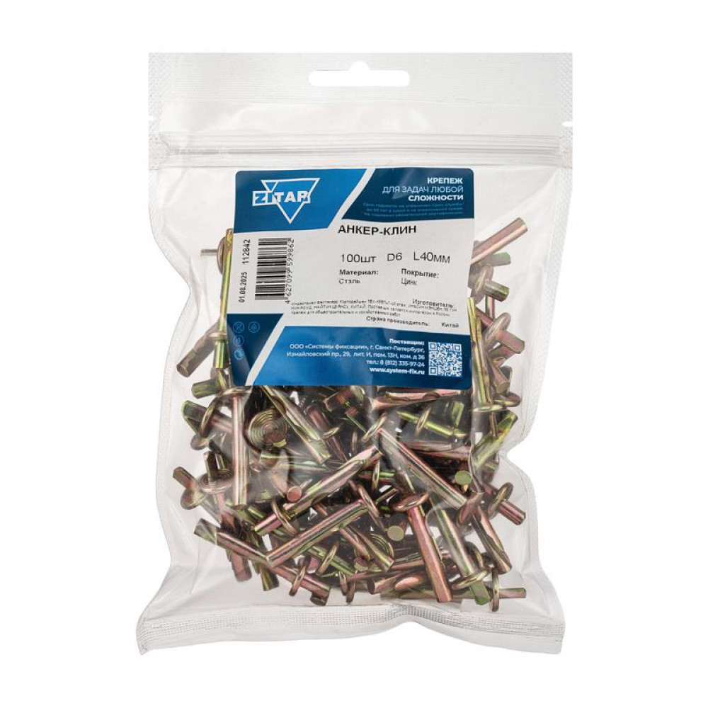 Доставка Анкер клиновой М6х40 (пакет) (уп.100шт) Zitar 112842