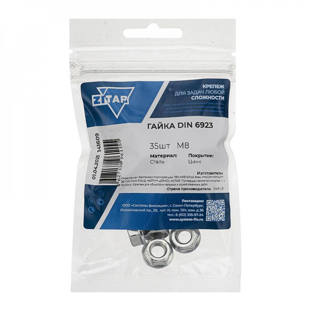 Доставка Гайка шестигранная с фланцем М8 DIN 6923 цинк. (пакет) (уп.35шт) Tech-Krep/Zitar 141609