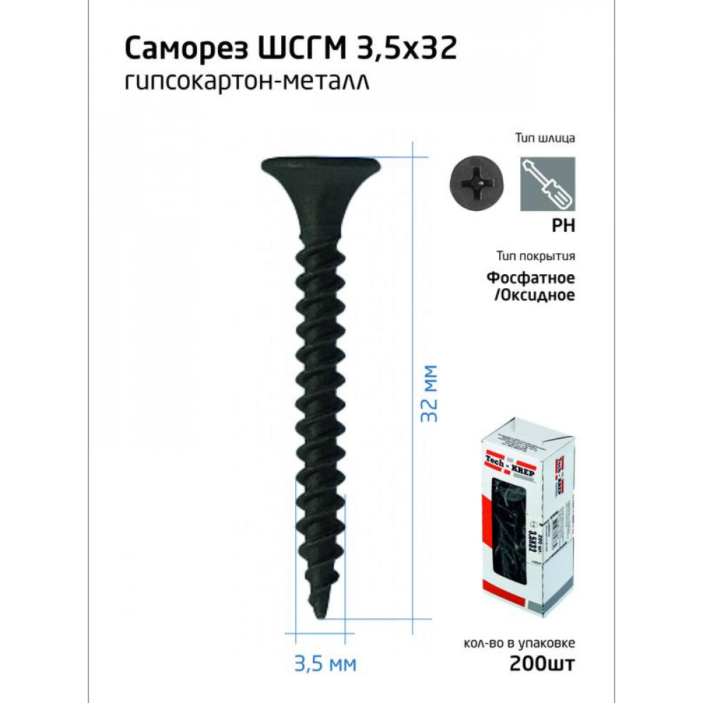Саморез гипсокартон-металл 3.5х32 (коробка) (уп.200шт) Tech-Krep/Zitar 102699