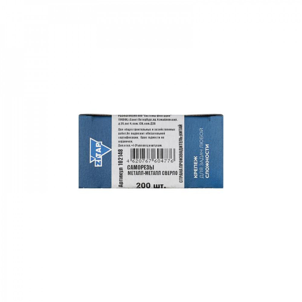 Доставка Саморез для тонкого метал. листа со сверлом 4.2х13 (коробка) (уп.200шт) Zitar 102148
