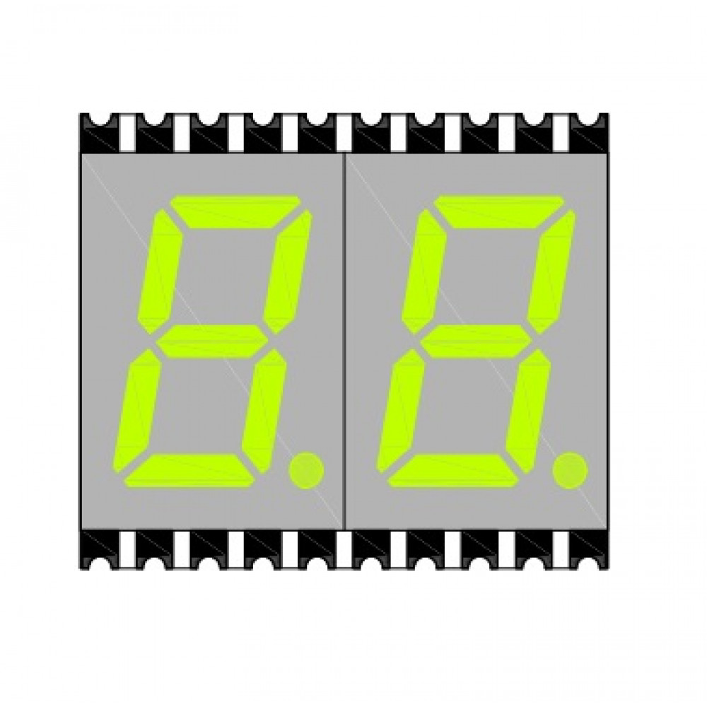2-х разрядный сегментный индикатор smd 7,62мм/красный/638нм/15-45мкд/ОА