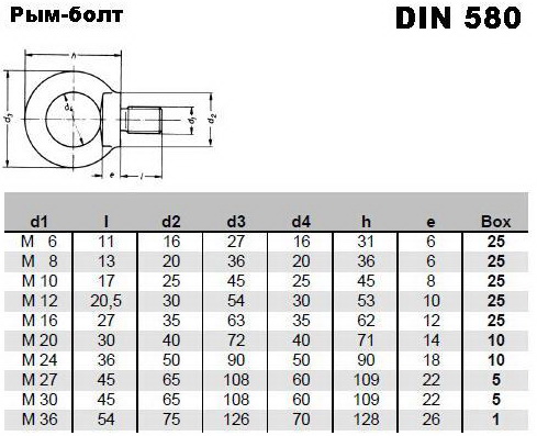 Описание Рым-болт DIN 580 M12 DIN 580 М12